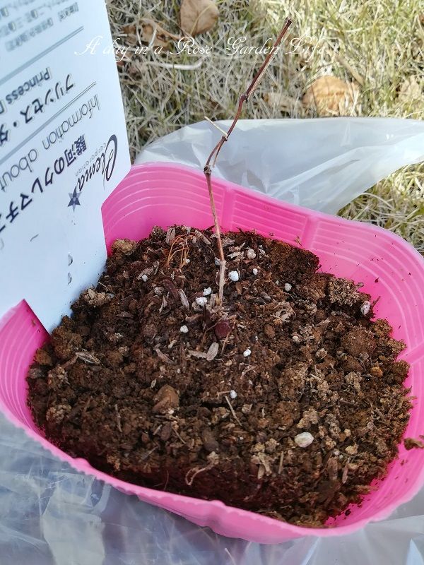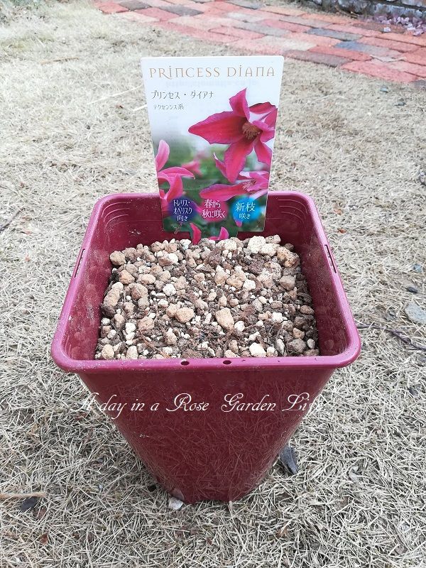 クレマチスの植え付けは深植えにして枝数を増やすようにする、とのことだったので、今回も少し深い位置になるように調整しました。といっても今回かった苗だと地上部がほどんどないから、意味あるのかちょっと疑問ではあります。