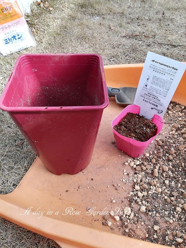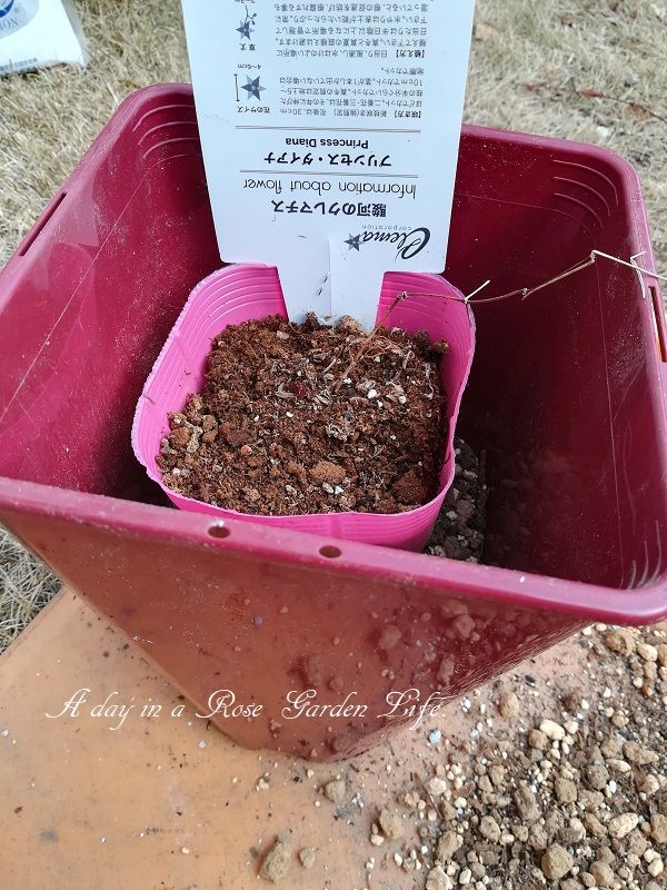 この間買ったF&Gローズの鉢を再利用します。