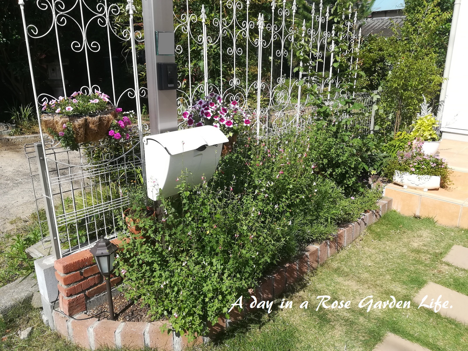 マーガレットをメインに植えていて、マーガレットはすでに花後切り戻し済みなんですが、チェリーセージがすごい勢いで伸びる伸びる。
