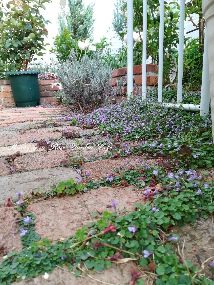バラの開花はまだ早いですが、アーチの下で可憐な花を咲かせる植物があります。