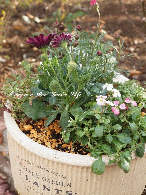 アリッサムとガーデンシクラメンの寄せ植えだったのですが、今年は寒さがきつくて案の定ガーデンシクラメンは枯れちゃいました。