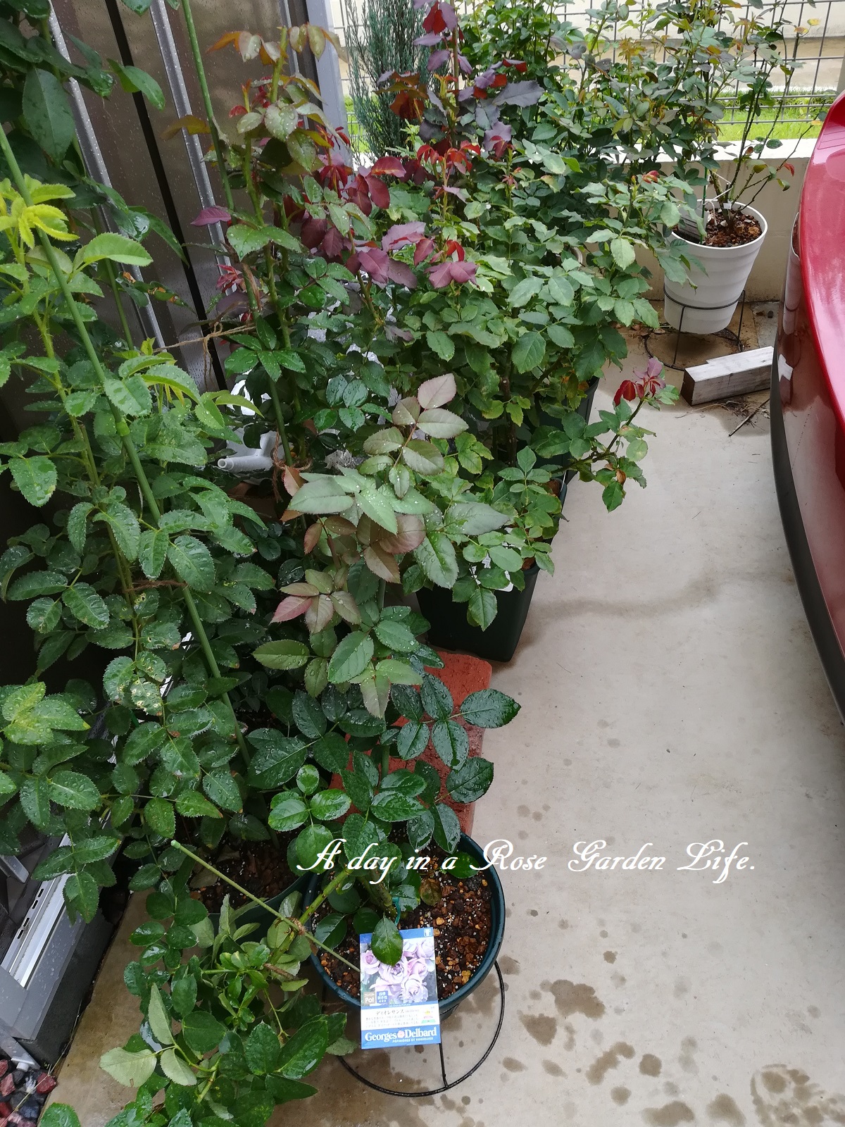 鉢バラも、おけるものは車と物置の間へ避難。
