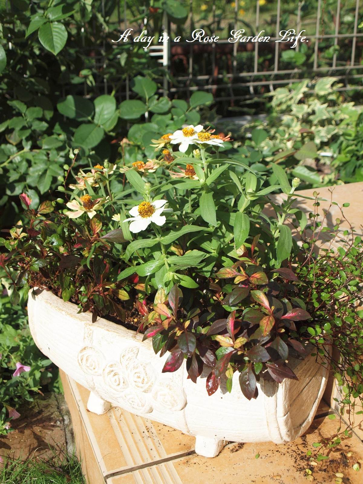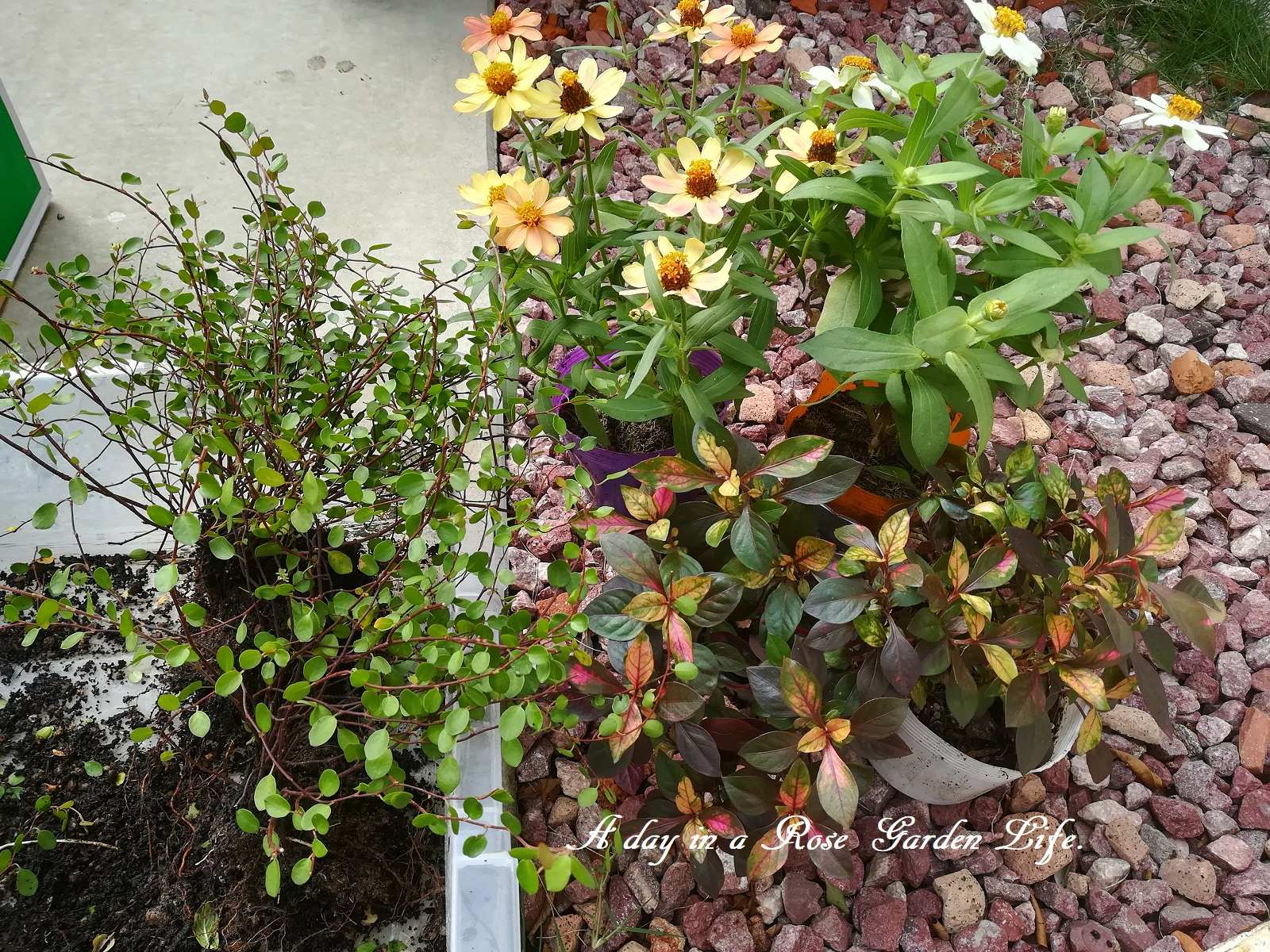 別の寄せ植えで使っていた苗も再利用。