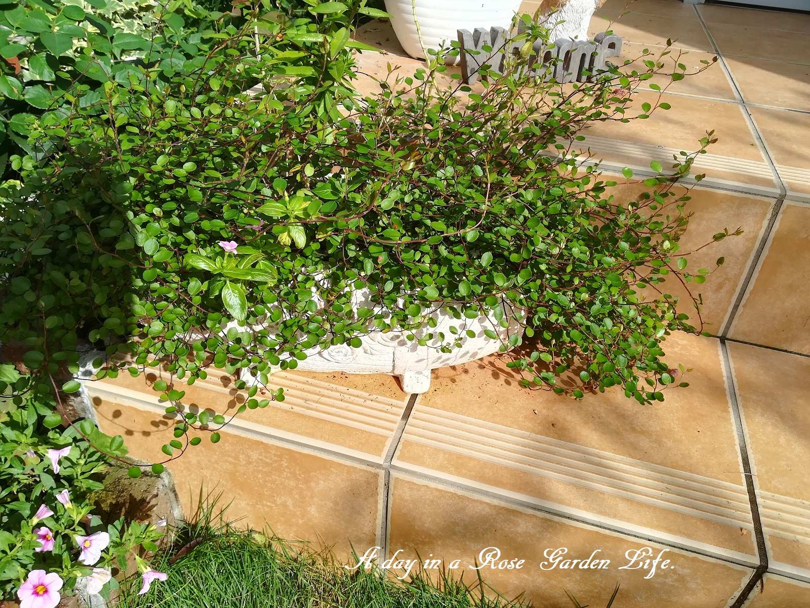 夏前に作った寄せ植えが、ワイヤープランツばっかり茂ってしまったので、秋スタイルに衣替えしました。