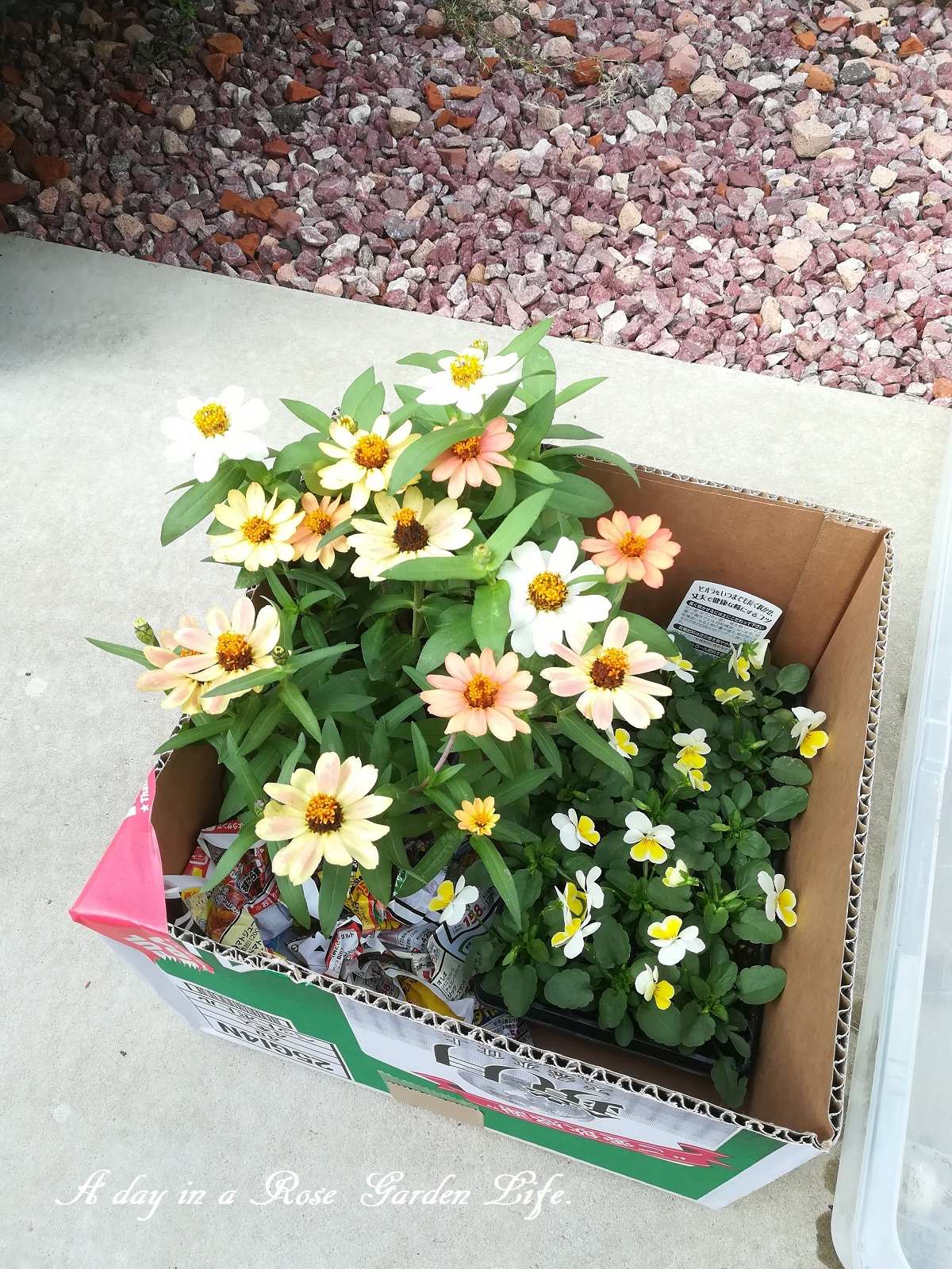 いつもピンク系ばかり植えてるので、今年はクリーム色にしました。