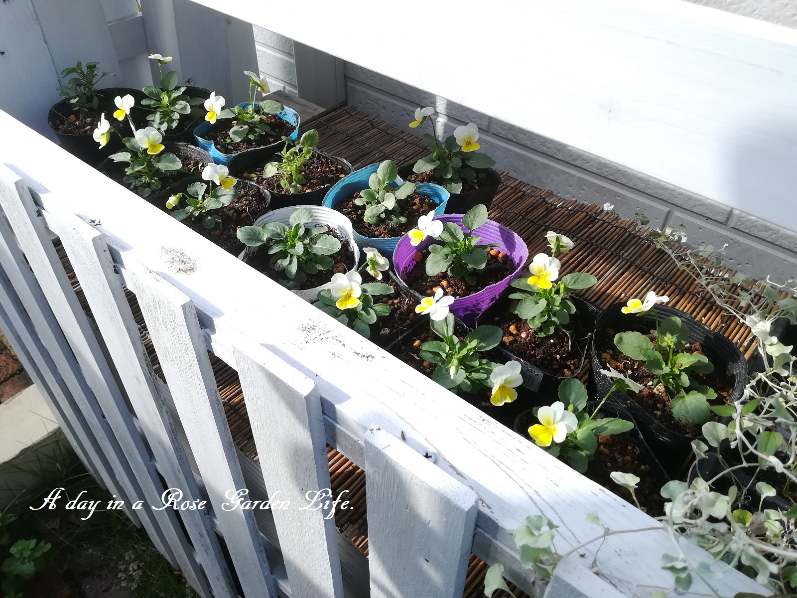 15株入りビオラは、ポリポットへ植え替えて、花壇植えするまで大きく育てます。