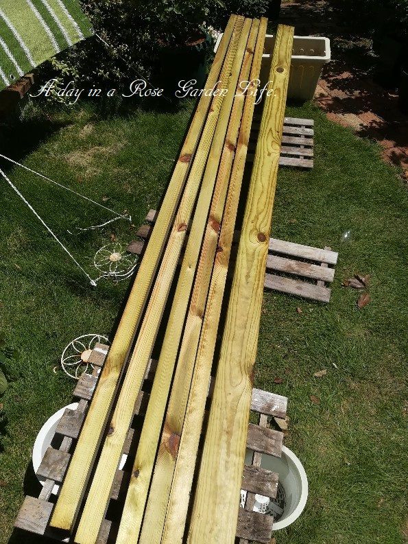 こんなに暑いのですが、先週少し涼しくなったタイミングで、リビングの窓に合わせてパーゴラを作り始めました。