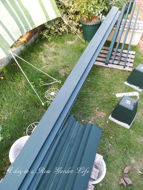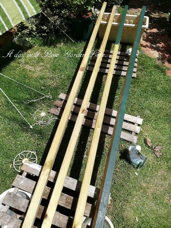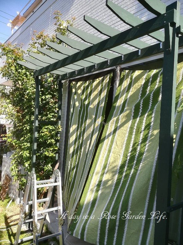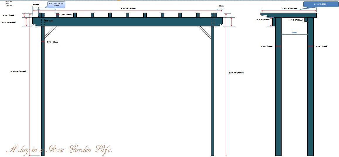 イメージ通りのものが出来ました。奥に見えているバラ "ブラン・ピエール・ドゥ・ロンサール”を冬になったらパーゴラへ誘引する予定です。