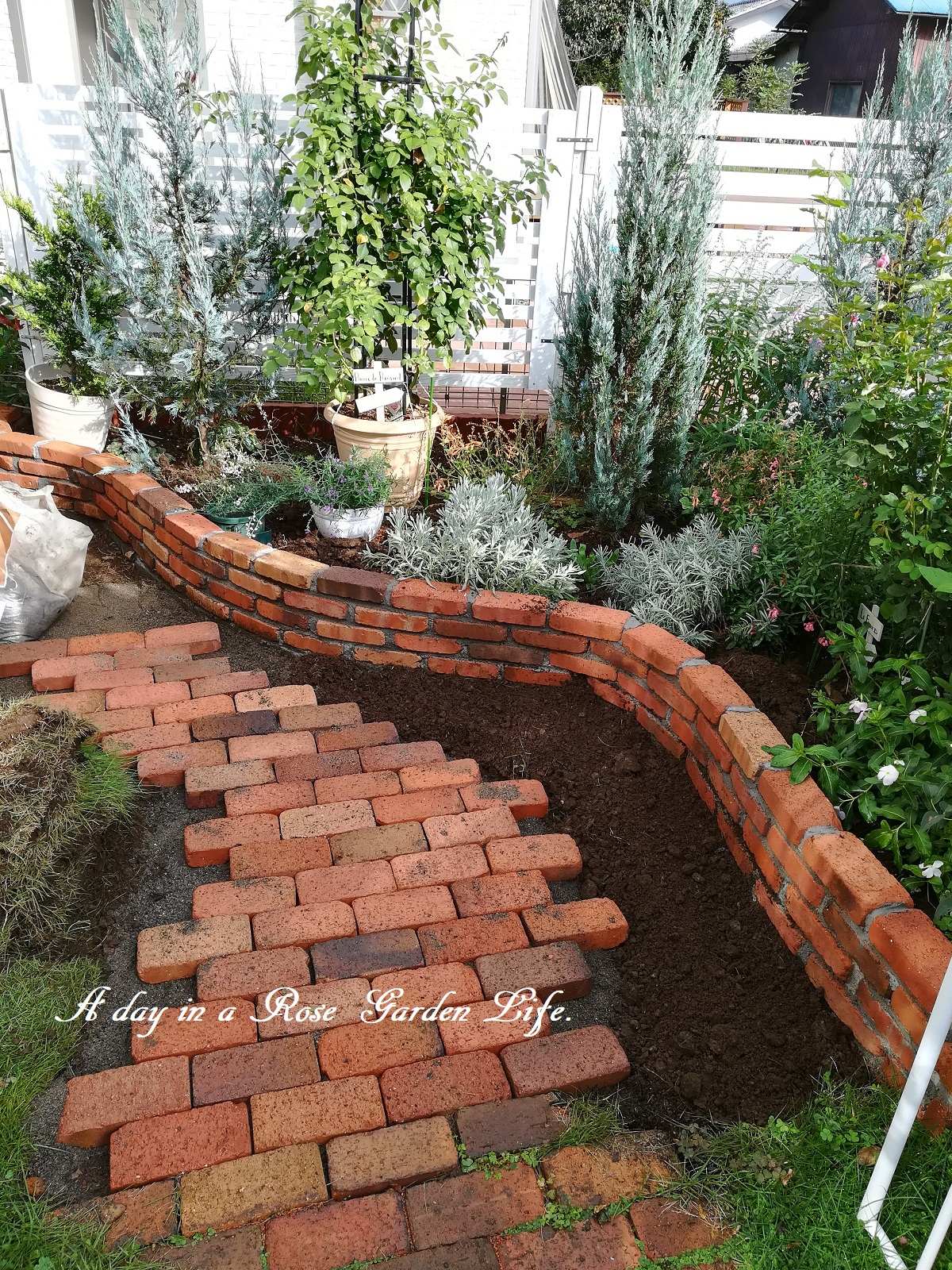 レンガを買い足したら、もう少し端の方までレンガを敷きますが、少しはグラウンドカバーを植えるスペースを確保予定。
