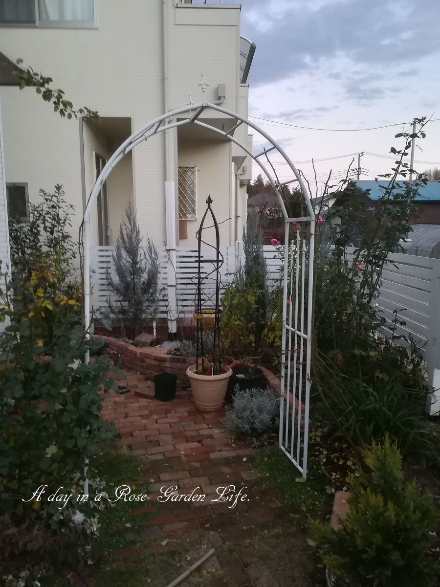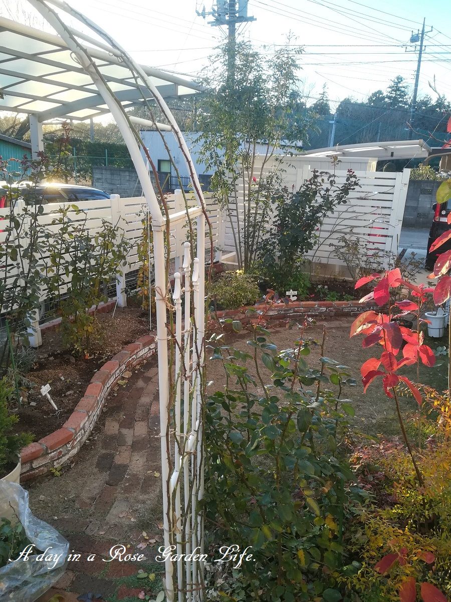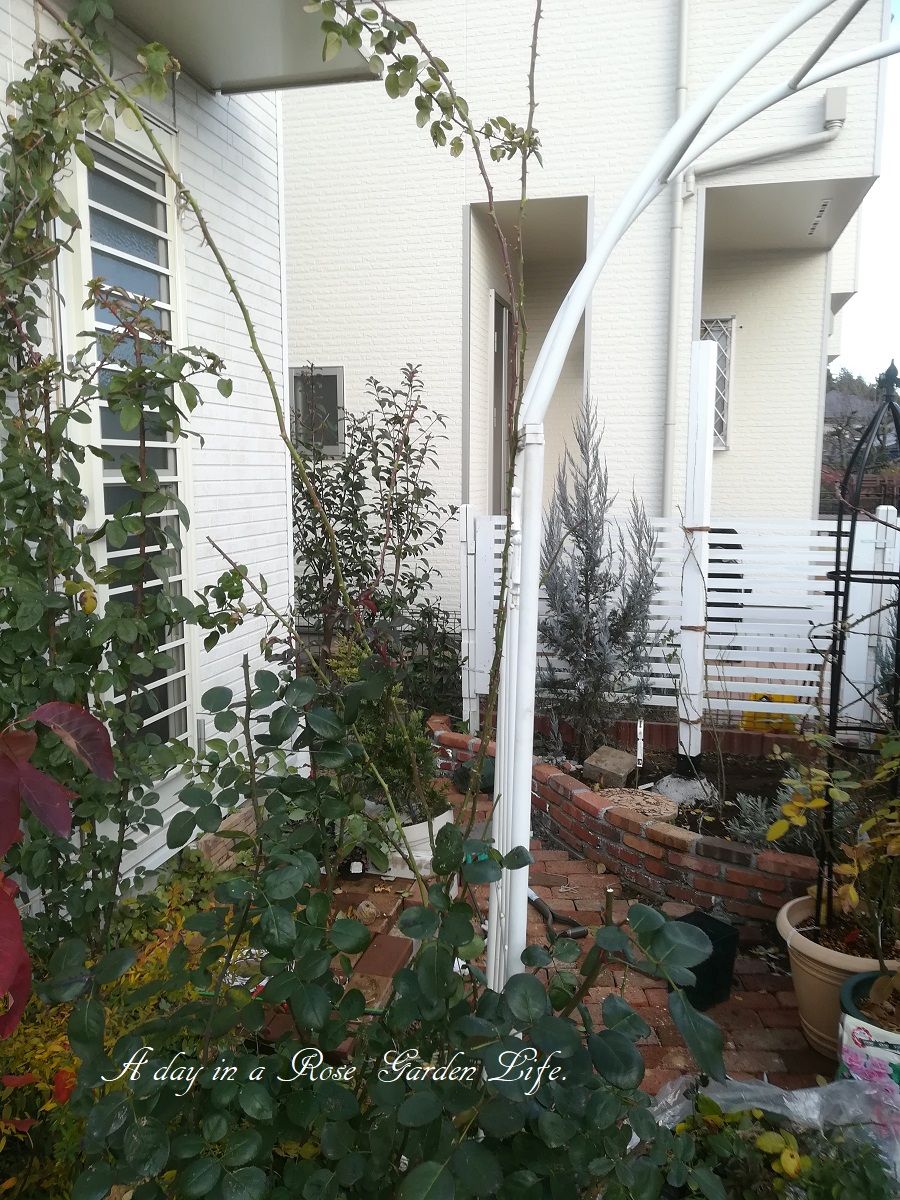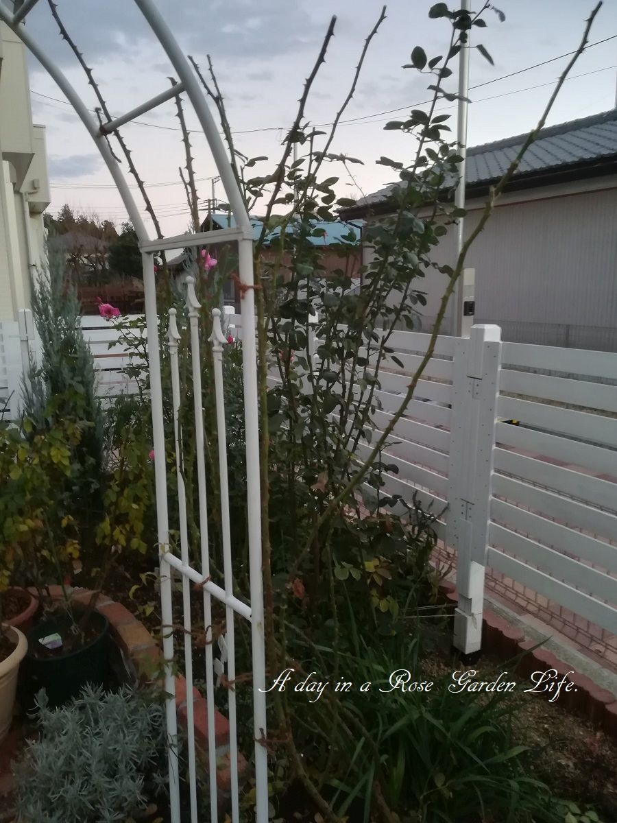 アーチのつるバラ誘引 前編 バラの成長記録 2017年12月18日 もう12月も後半になって2017年も終わりが近づいています。 実質庭作業ができるのも今週末くらいですが、だいぶ紅葉も進んできたのでアーチの整理に着手しました。 まずは北側のレオナルドダビンチから。 陰になってしまうのであまり生育もよくないので、葉をむしり取るのも楽です。。 伸びたつるはアーチ上部まで伸ばして、短い枝でサイドをカバー。 南側のポンポネッラは非常に生育が良いですが、フロリバンダローズなだけに意外と枝は長くありません。シュート本数は十分です。 暗くなってしまったのでまだ誘引終わってませんが続きは次週。 アーチの奥ではラフランスが今年の最後の開花ピーク。 予約大苗 【バラ苗】 ポンポネッラ (Ant桃) 国産苗 大苗 6号鉢植え品 ★ 【アンティークタッチのバラ.四季咲き.フロリバンダ】《IR-IRO》※2月末までにお届けの予約大苗 いつも多くの方々に見ていただき、ありがとうございます。 よろしかったらポチっとしていただけると、更新の励みになります☆ミ にほんブログ村 [0回]PR