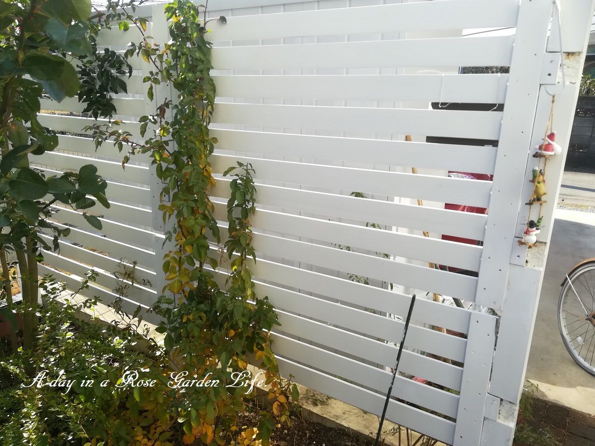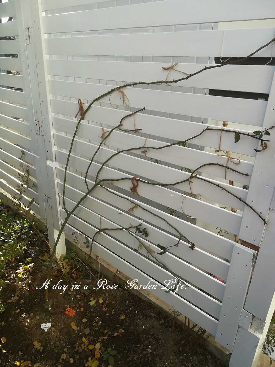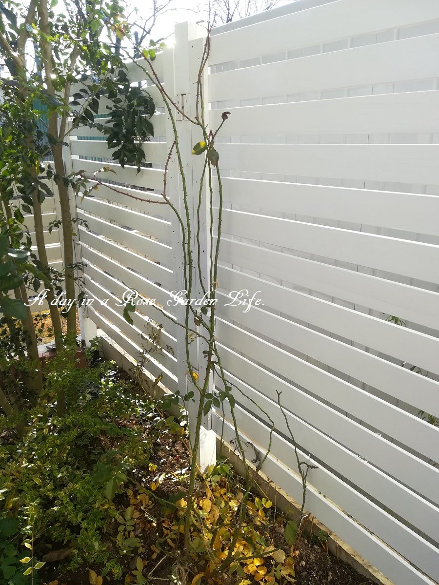 次はリビングから一番よく見えるフェンスへ今年植え付けたアミ・ロマンティカ。