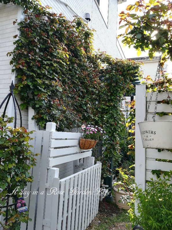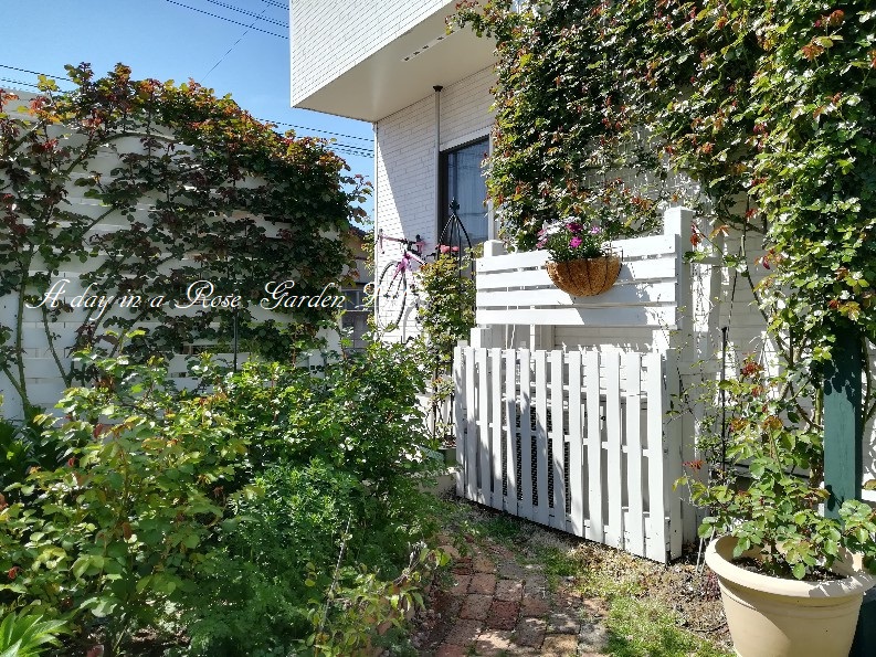 それでも、バラたちはすくすくと育っていて、ブラン・ピエール・ドゥ・ロンサールのバラ壁が