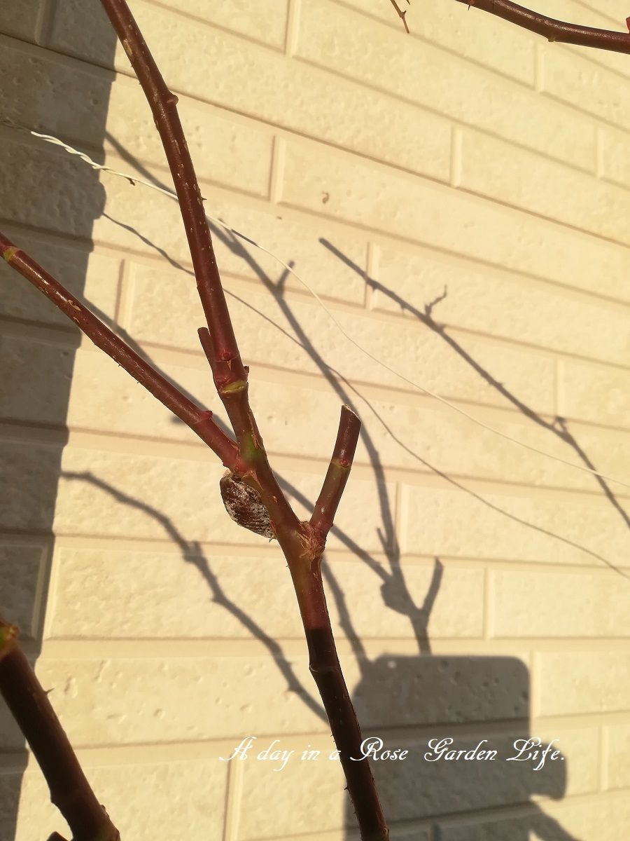 こんなところにカマキリが卵を産み付けています。来年羽化してバラを守ってくれるかな。