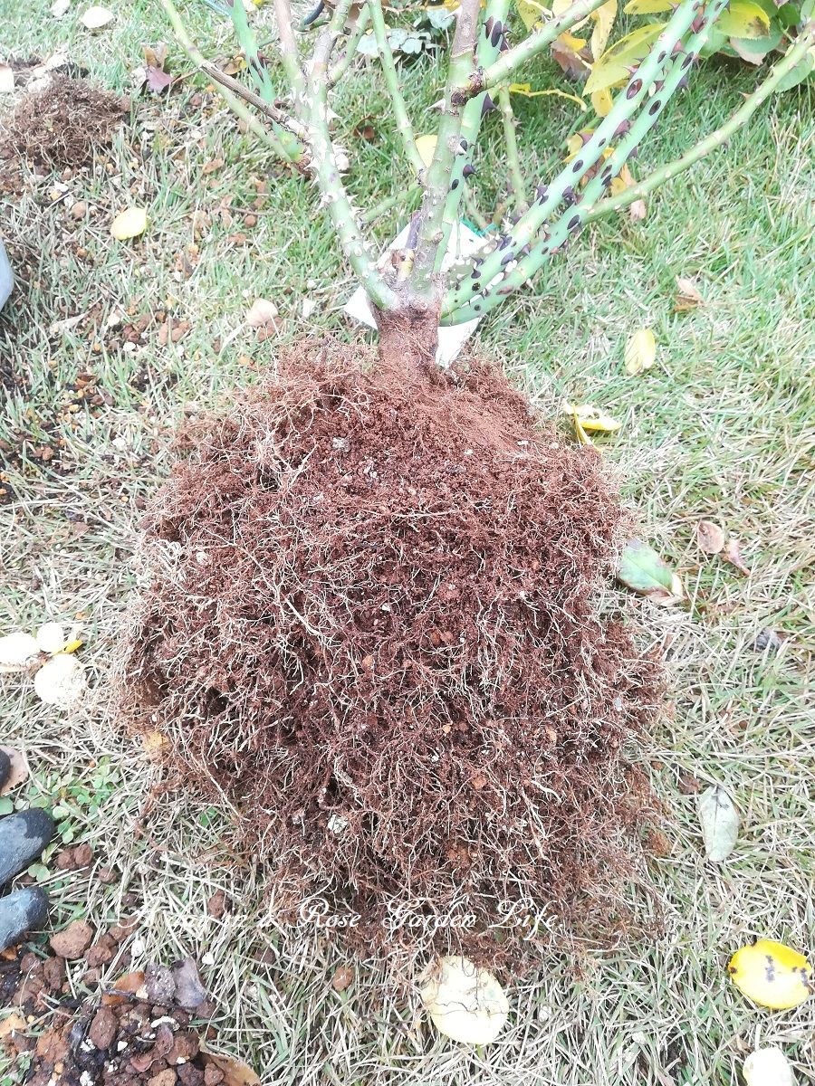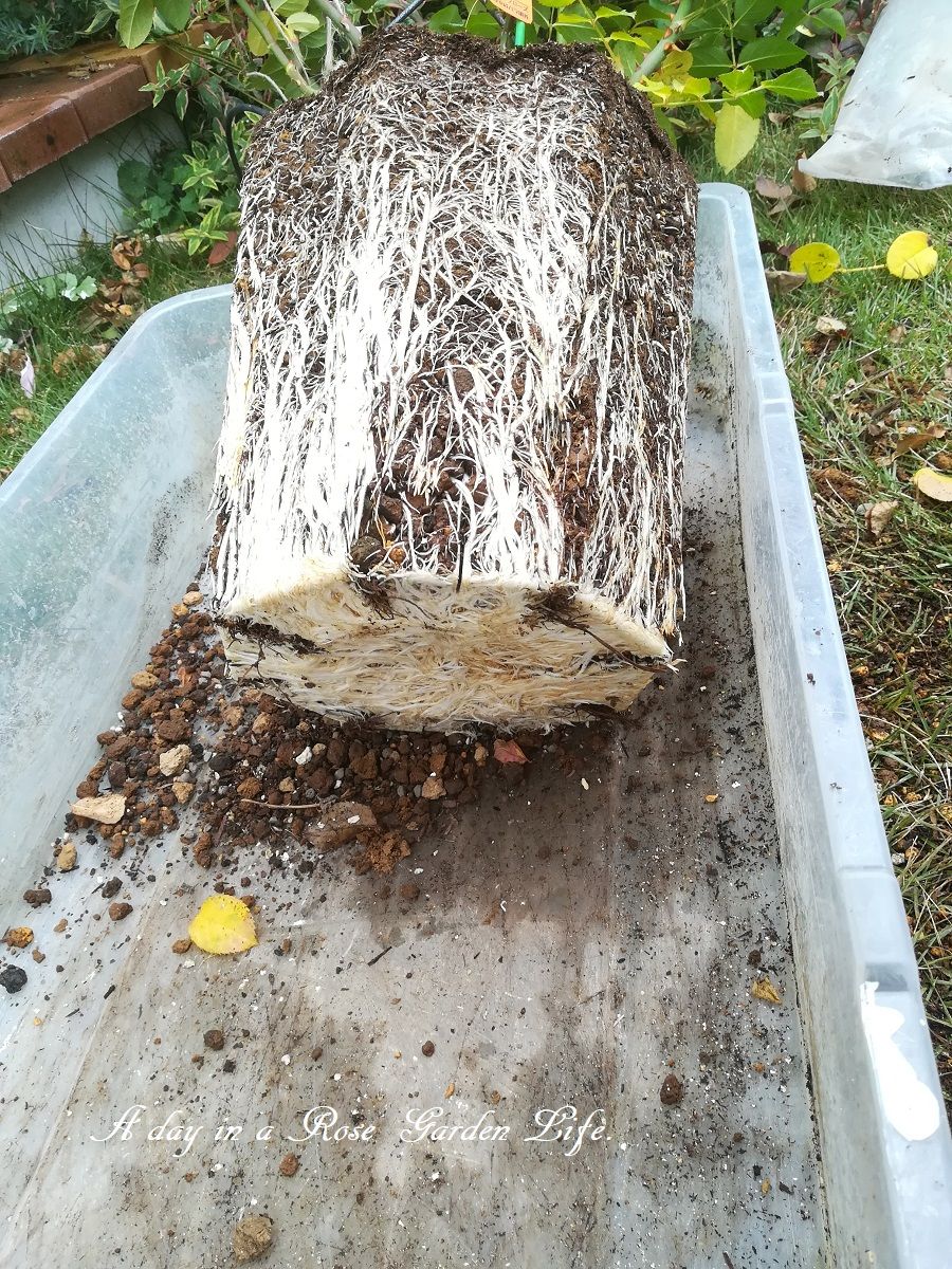 鉢を抜くのにすごく苦労しました。根鉢もぎっしり。ロングスリット鉢おそるべし。