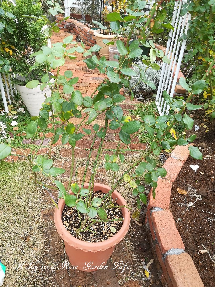 鉢バラの植え替えはほとんど終わらせました。