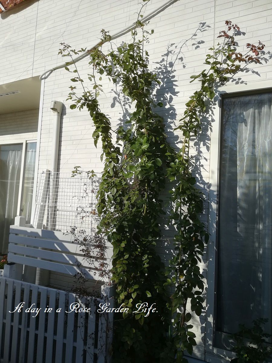 12月はつるバラの誘引の季節なので、つるバラの誘引場所を確保する作業を進めています。