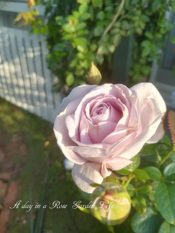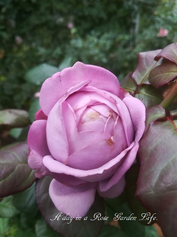 ブルームーン。アザミウマと雨のせいで花弁が傷んでいます。