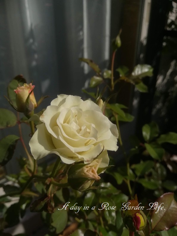 こちらも新苗でお迎えした緑光。ヒラヒラ具合が絶妙なフロリバンダ。個人的には白薔薇はカップ咲きよりこのような感じのバラの方が好み。