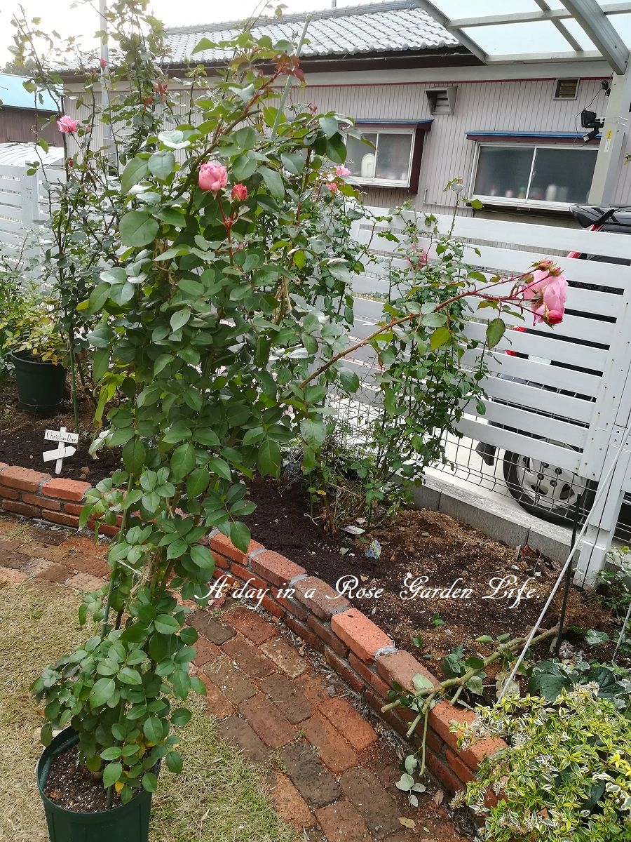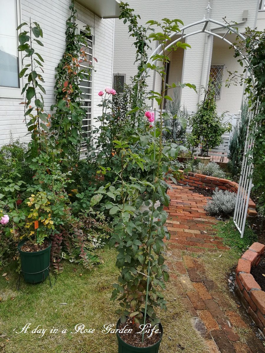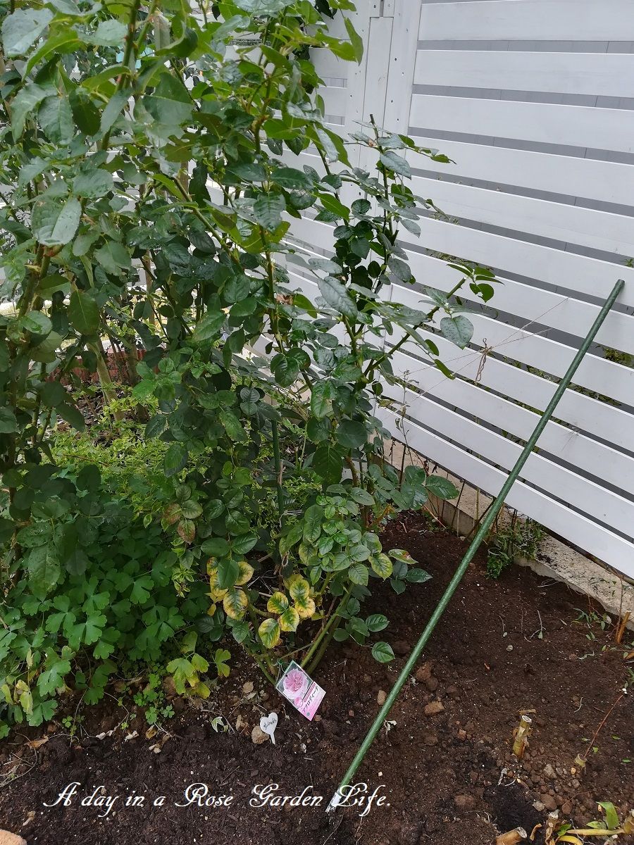 自立型誘引仕立てにして、少し日陰になってしまうシマトネリコの左側あたりに植える予定。