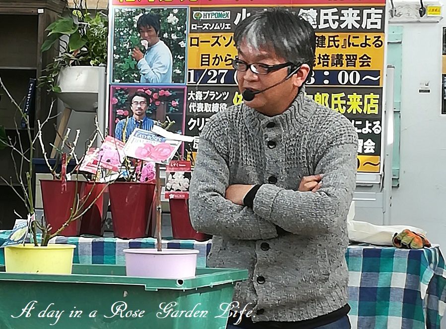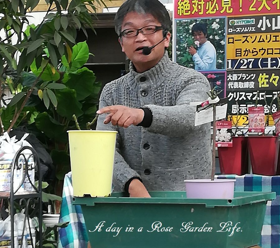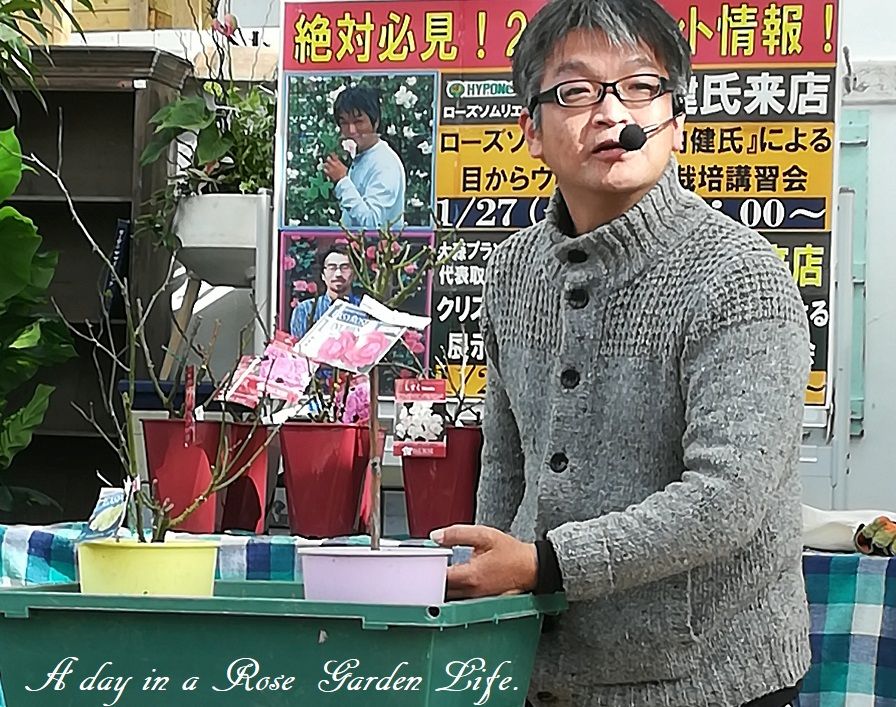 講習会のあと、3000円以上購入すると、NewRosesに小山内さんのサインをしていただけるとのことだったので、京阪園芸のHT