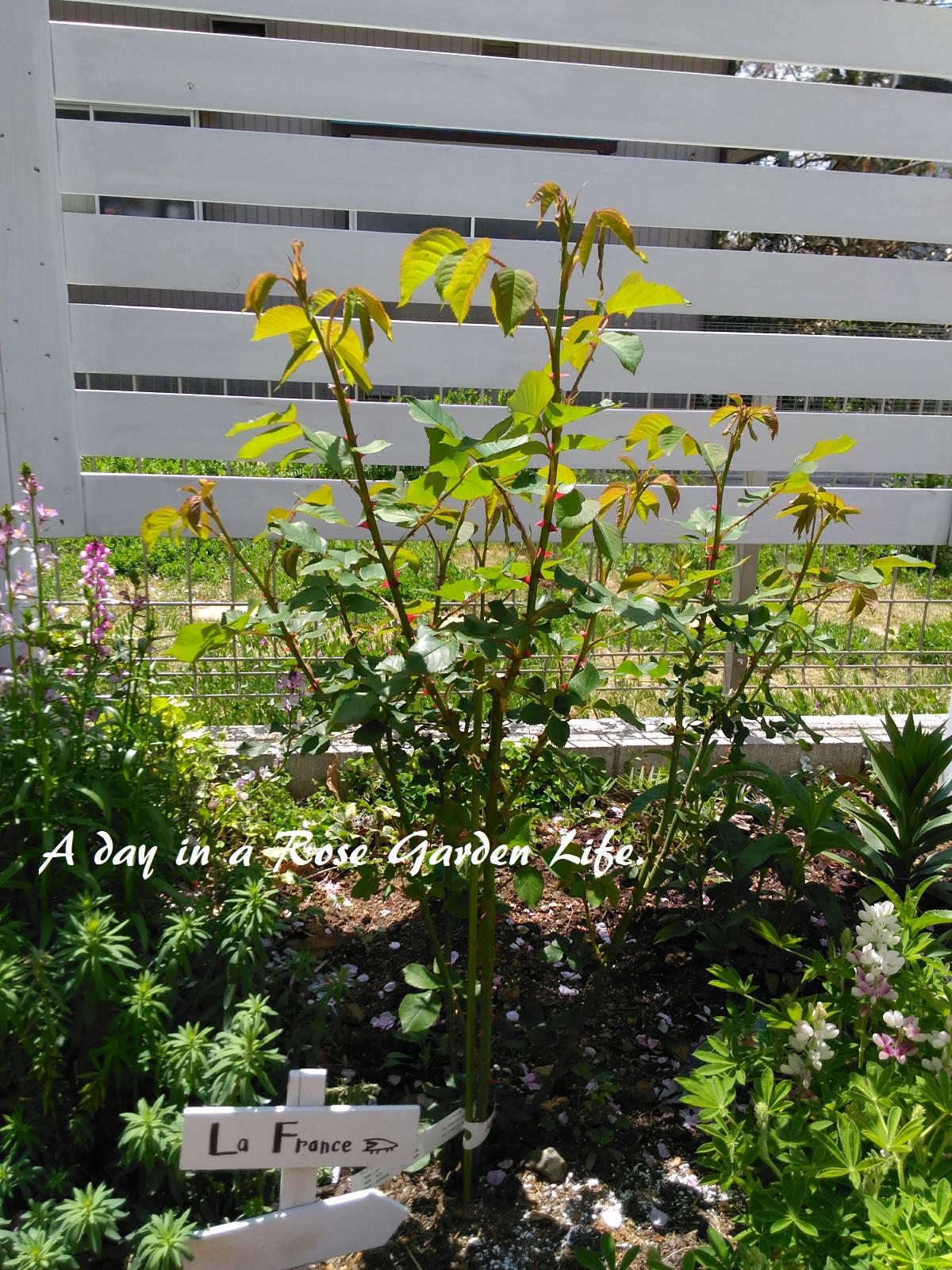 バラの家から鉢増し済み新苗にて購入したもので、秋に地植えしました。
