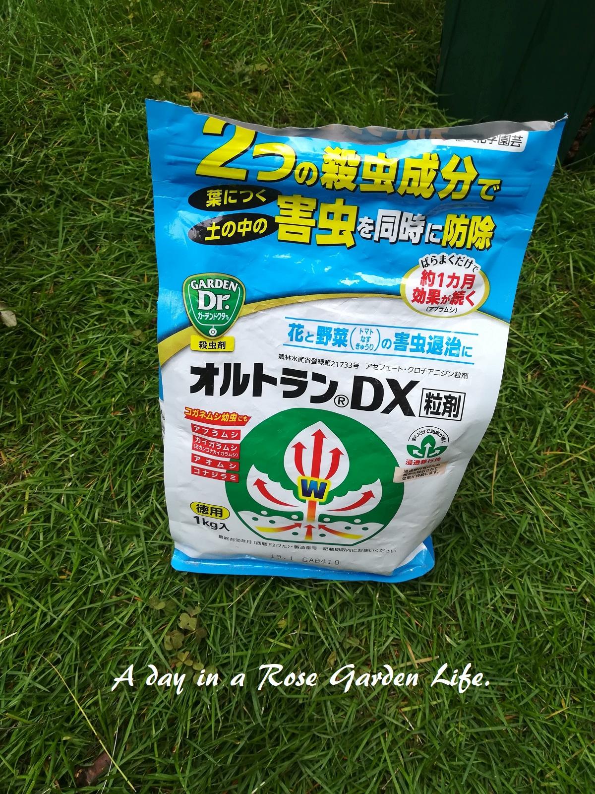 葉を食害する害虫が摂取すると中毒でやがて死に至るというタイプの殺虫剤なので、すぐ雨に降られちゃうと効果が期待できないんだと思われる...