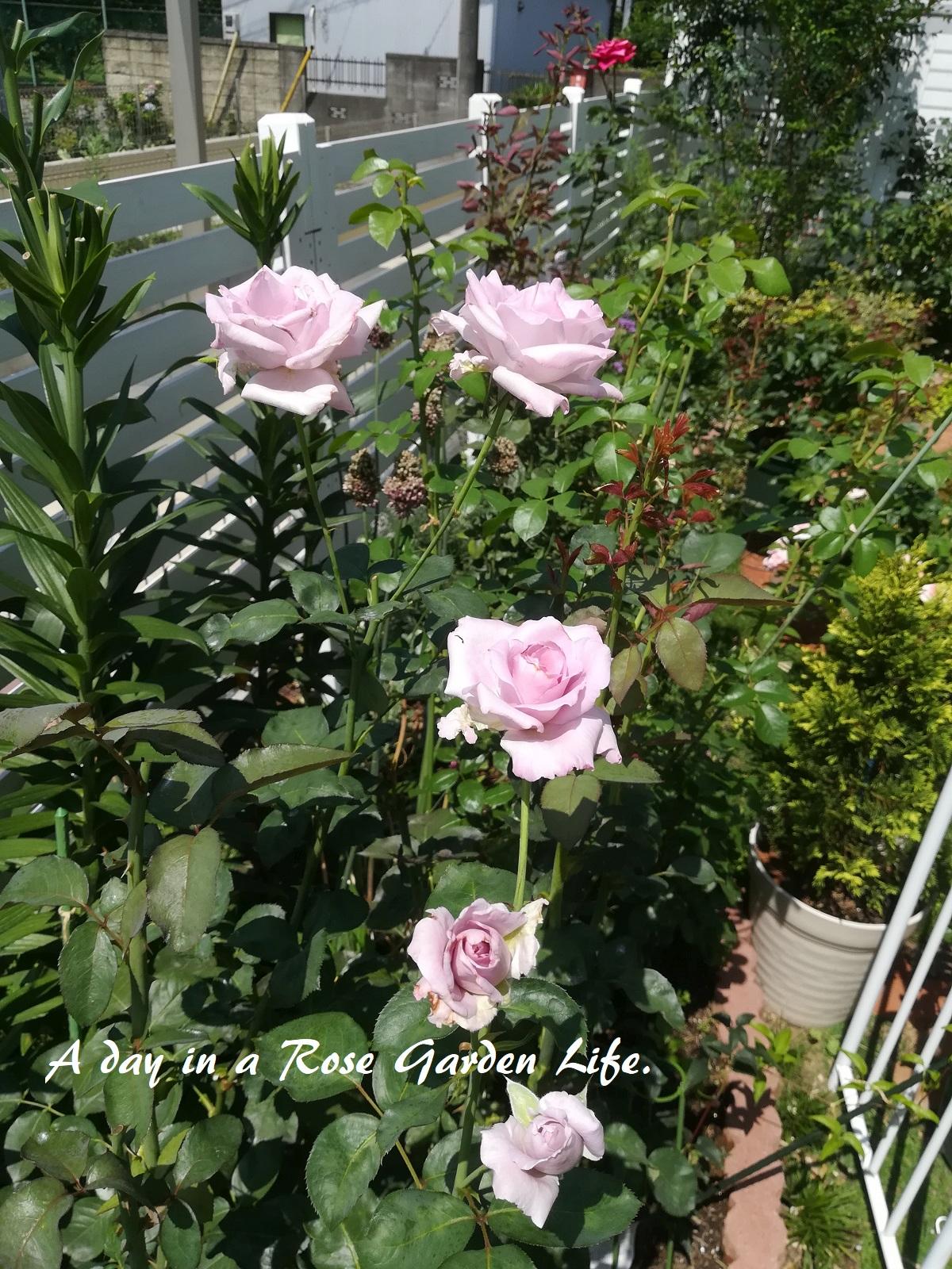 昨年、ピエール・ドゥ・ロンサールとほぼ同時期に、ジョイフル本田で手に入れたのが花が終わって安くなっていた鉢花の「ブルームーン」と、新苗だった「ジャルダン・ドゥ・フランス」でした。それぞれその年は花を咲かせず、鉢で育てて冬に庭植えにしました。