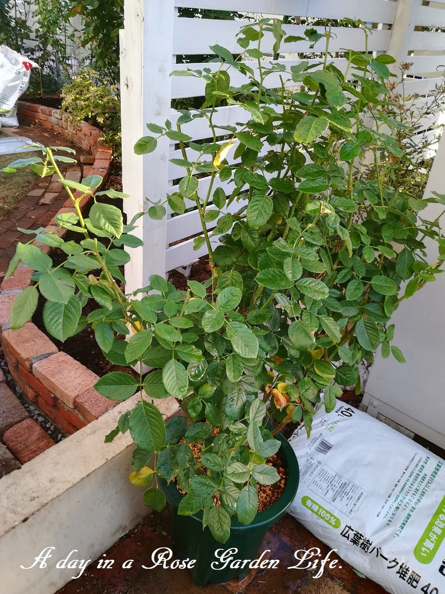 抜いた場所は熱湯消毒して別のバラを植える予定。