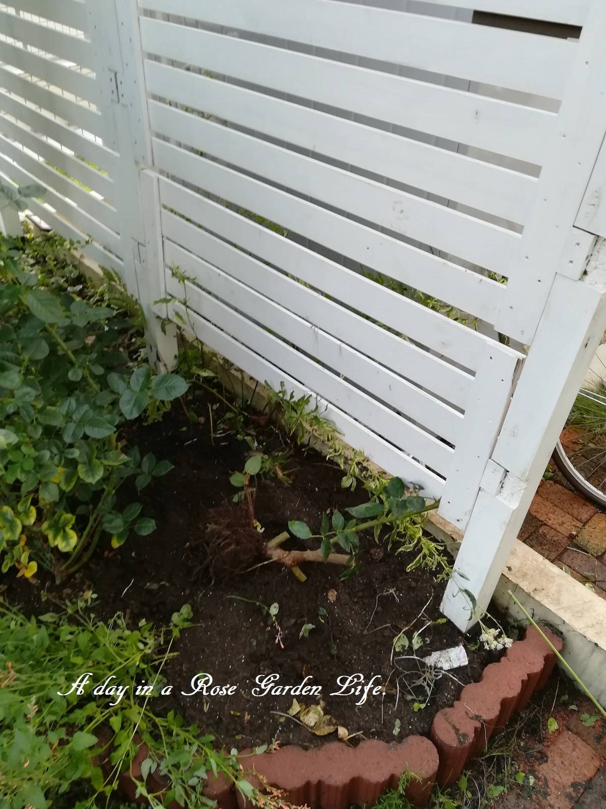 太い枝をノコギリで切り詰め、隣のアフロディーテを傷めないように根を掘り出しました。