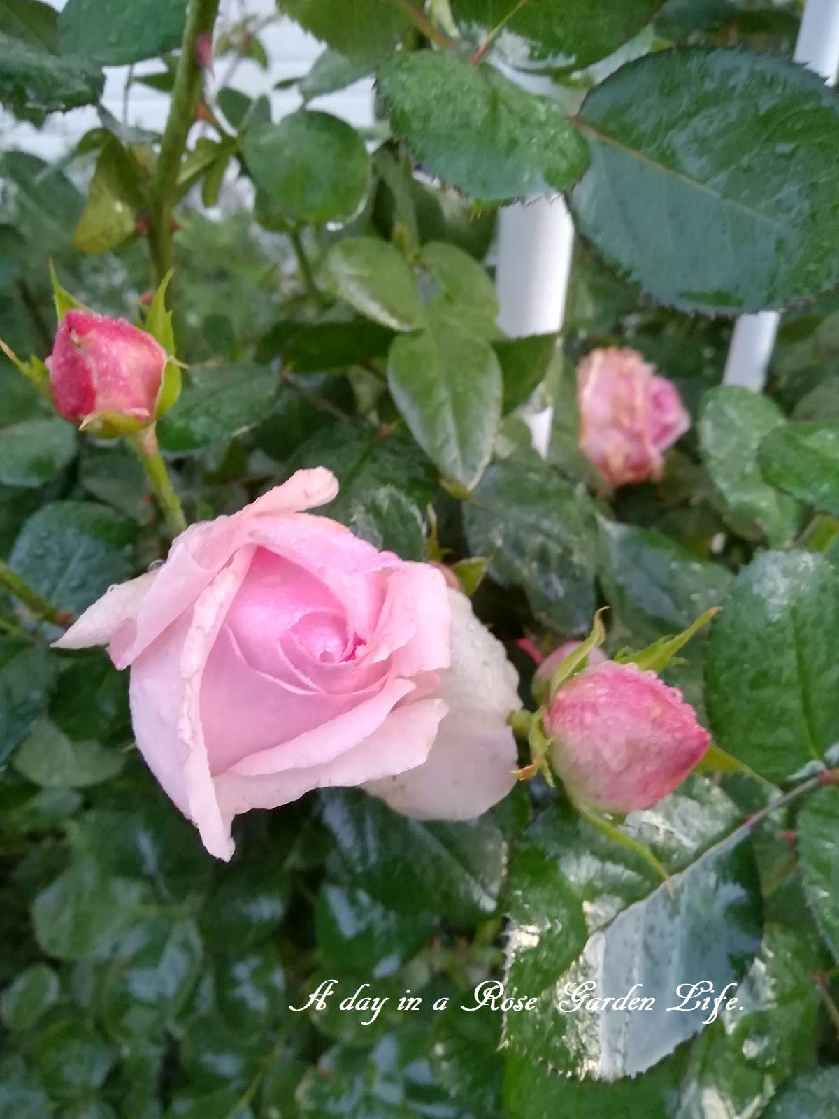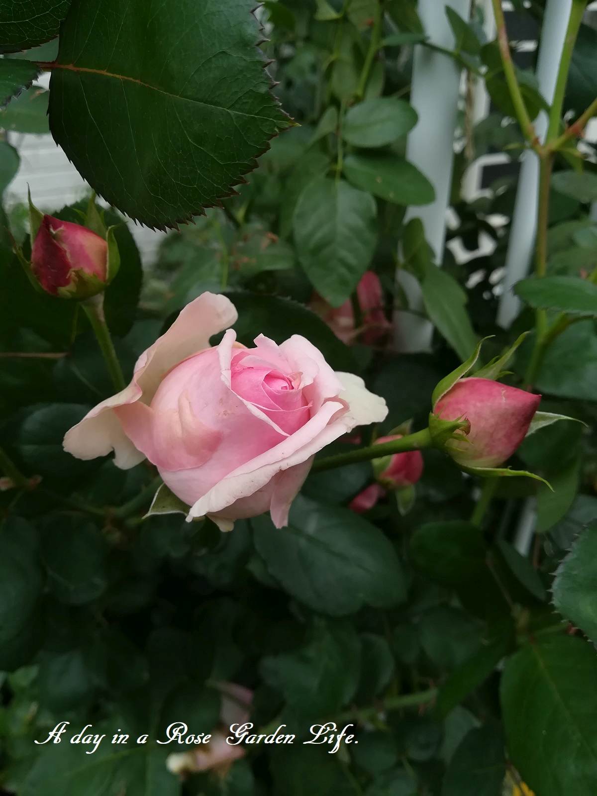 このバラはあっという間に開き切ってるので、ベストコンディションで楽しむのは非常に難しいバラですね。HTなので一度に咲く蕾も少ないので、狭い庭には向いてないかも。