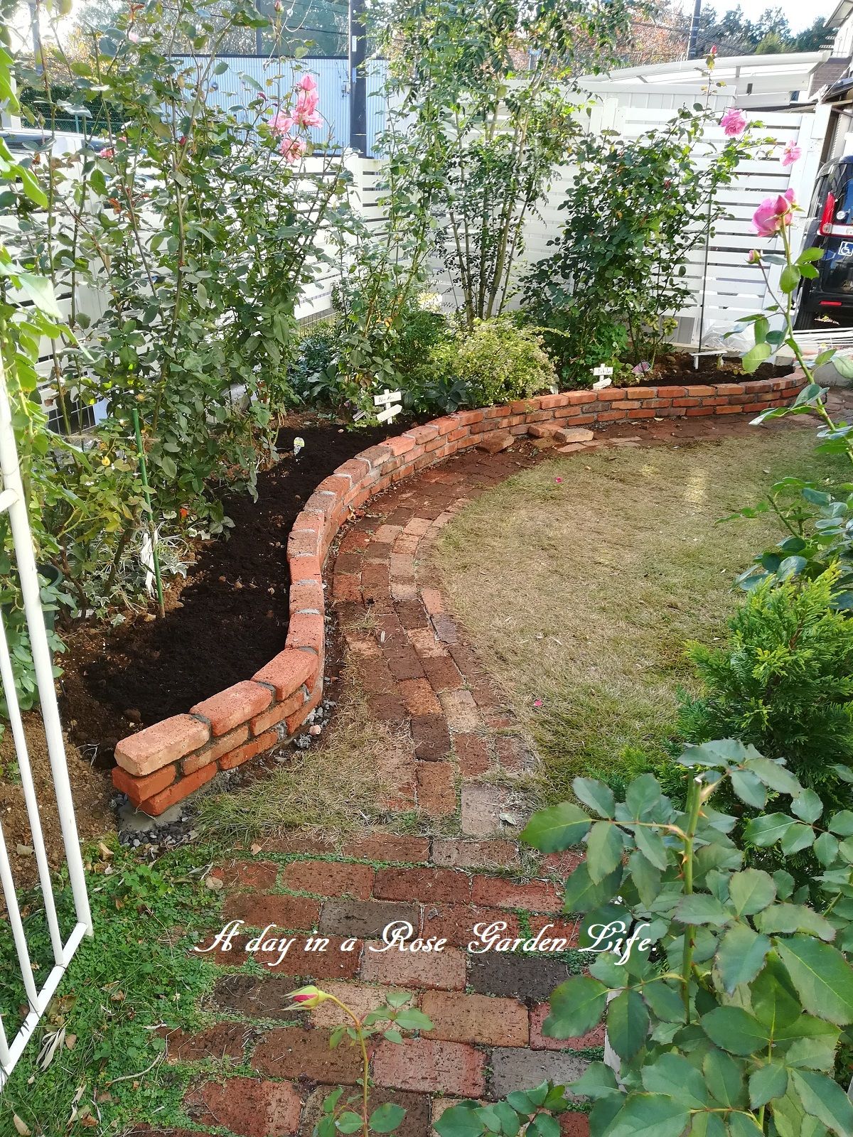 花壇を作ろう(10) ~花壇のレンガ積み完成~ バラの成長記録 2017年11月13日 昨日の記事でも少し映ってましたが、この週末に花壇を一通り完成させました。 先週残しておいた部分用に、追加でコンクリートブロックを購入。 いつもと違うHCへ行ったところ、横筋の重量ブロックがなかったので、軽量ブロックにしていますが。 長かったこの作業ももう少し。 最後の方になってくると、仕事が雑になりますw 最終的にこんな感じになりました。 小道のレンガが取れてるのはまた今度修正で。 前よりも若干花壇の面積が増えたので、バラの配置も見直す予定です。 シリーズバックナンバー 花壇を作ろう(9) ~花壇の延伸~ 花壇を作ろう(8) ~レンガの半割~ 花壇を作ろう(7) ~花壇前をレンガ敷きに~ 花壇を作ろう(6) ~コニファーの移植~ 花壇を作ろう(5) ~続・レンガ積み~ 花壇を作ろう(4) ~レンガ積み~ 花壇を作ろう(3) ~アーチ越しの見栄えを良くしてみる~ 花壇を作ろう(2) ~基礎ブロックの設置~ 花壇を作ろう(1) ~寸法調整と予定地の整地~ いつも多くの方々に見ていただき、ありがとうございます。 よろしかったらポチっとしていただけると、更新の励みになります☆ミ にほんブログ村 [0回]PR