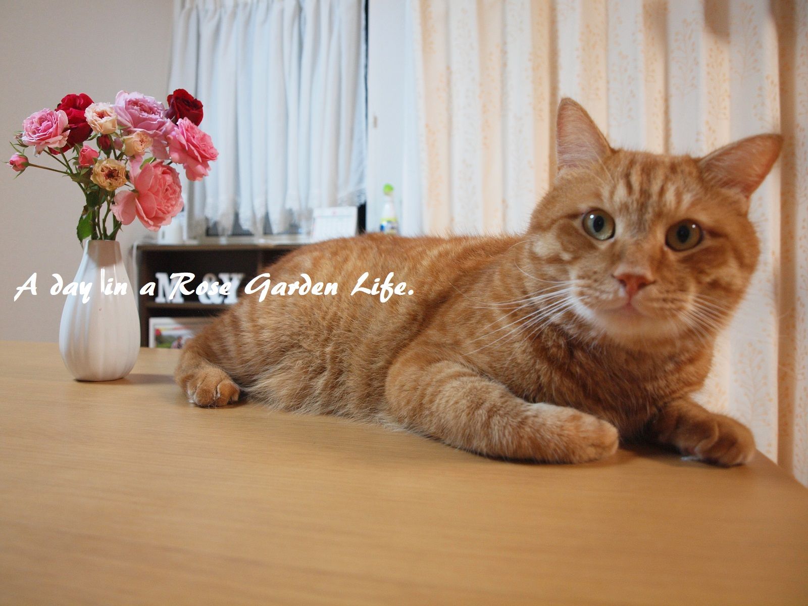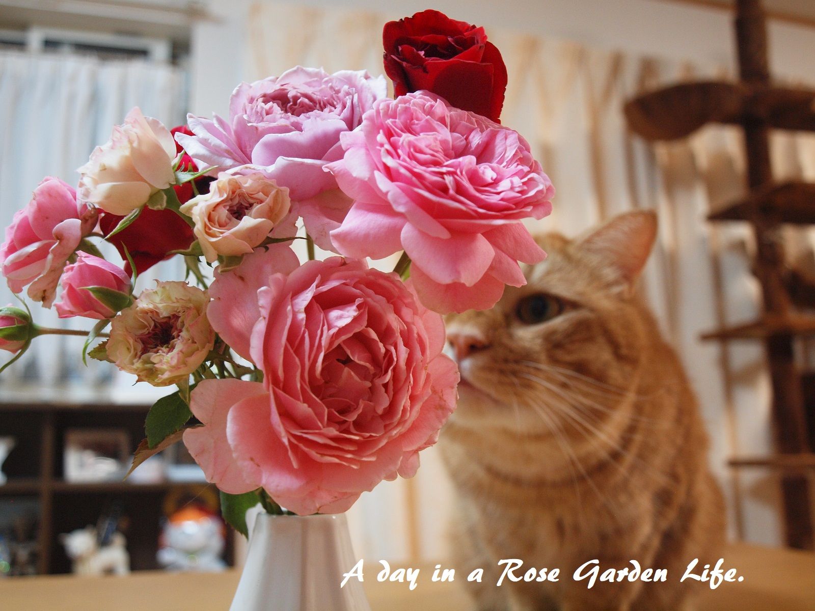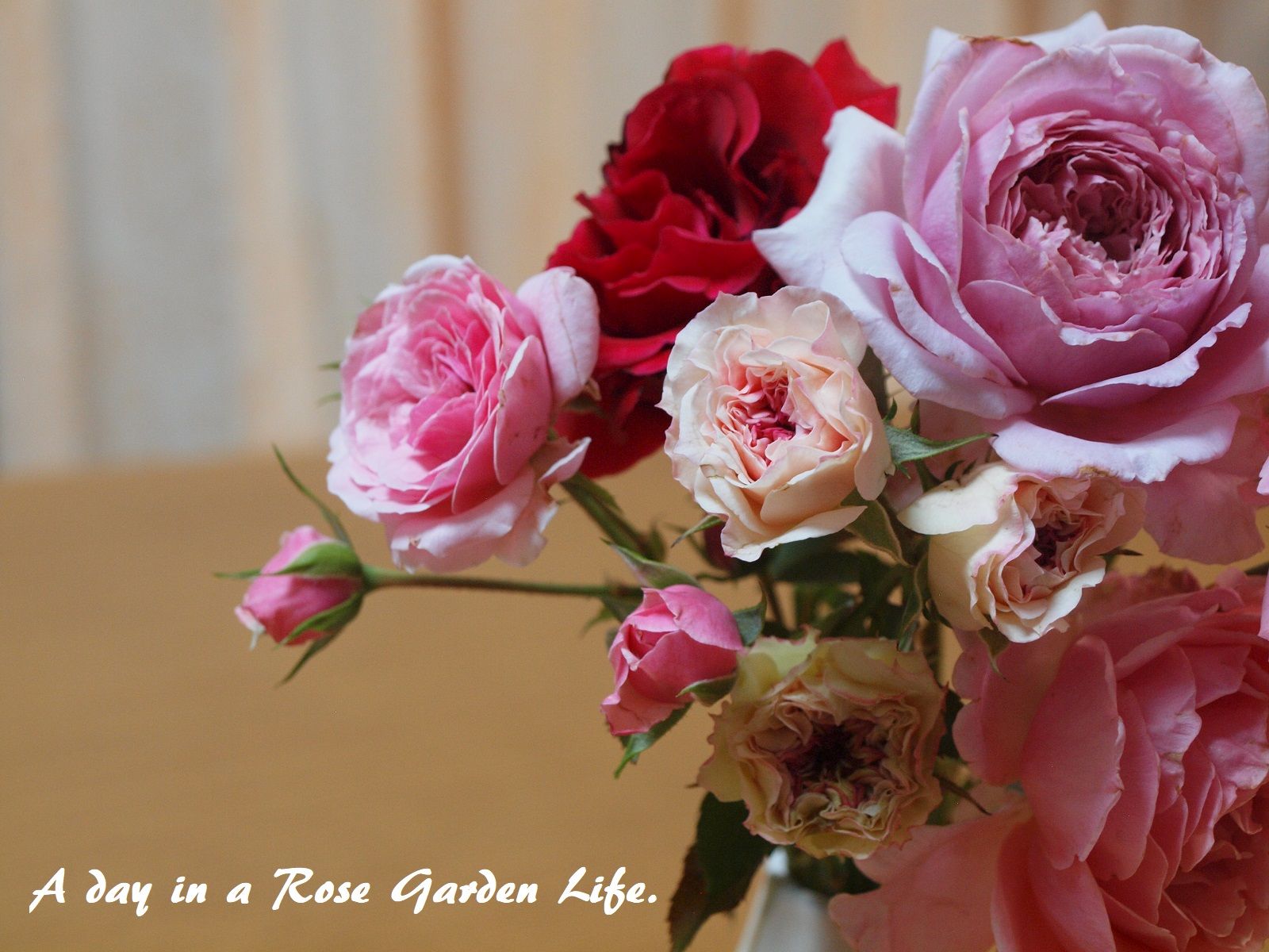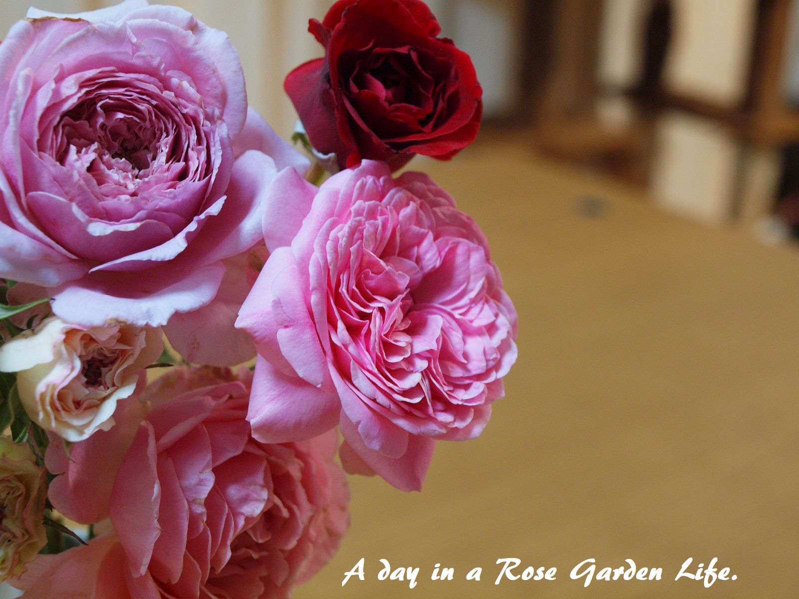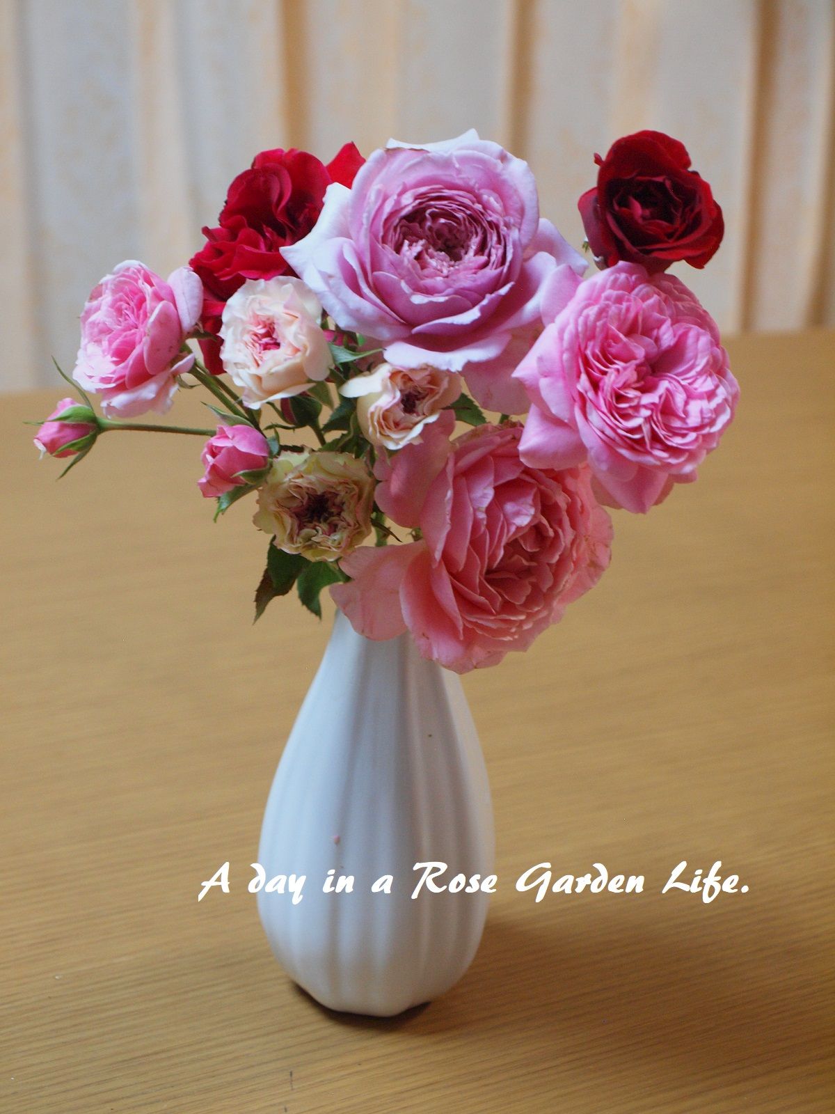 雨で花が傷むともったいないので、こういう時はガーデンで咲いてるバラを集めて花瓶で楽しみましょう。