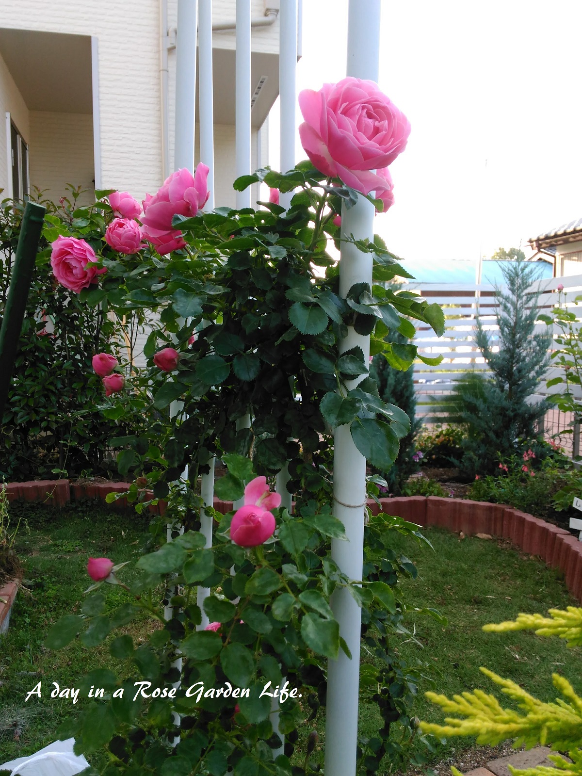 アーチに誘引してあります。ちなみにこのアーチ、国華園で販売されていたものですが、ふるさと納税の返礼品としていただきました。