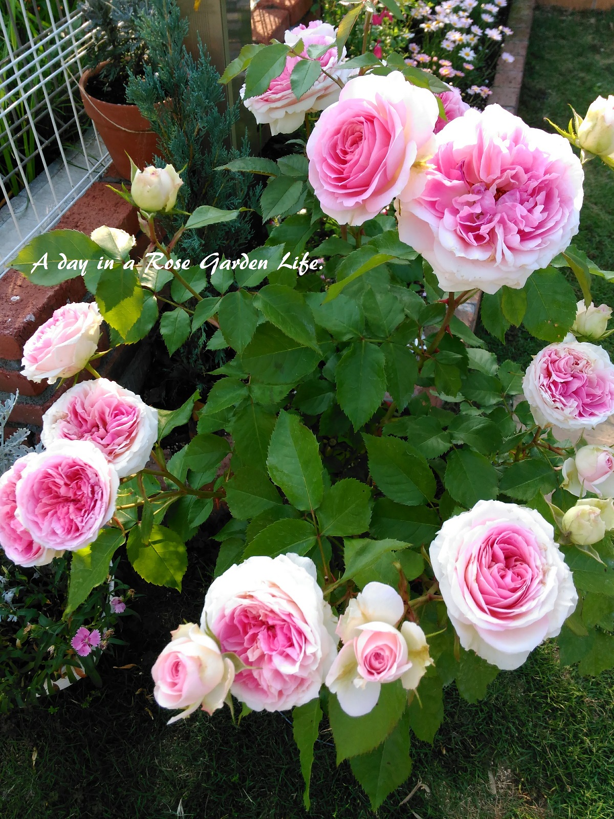 ブラン・ピエール・ドゥ・ロンサールは、エアコン室外機カバーの上に誘引スペースを作って近くに植えてあるので、来年は多くさいてくれることを期待。