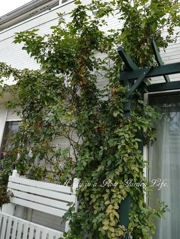 今年は窓側にパーゴラを作ったので、パーゴラ側にも誘引しました。