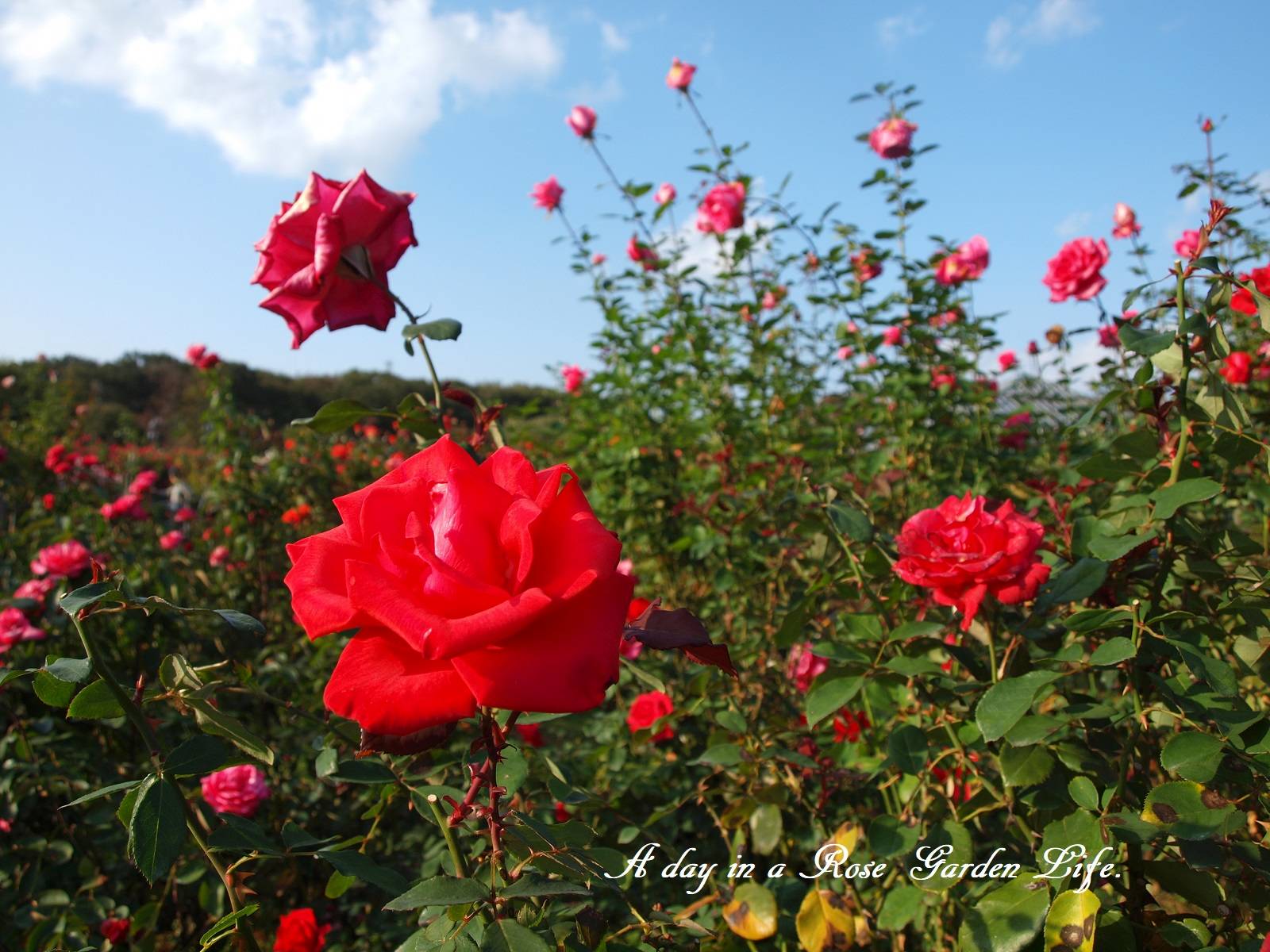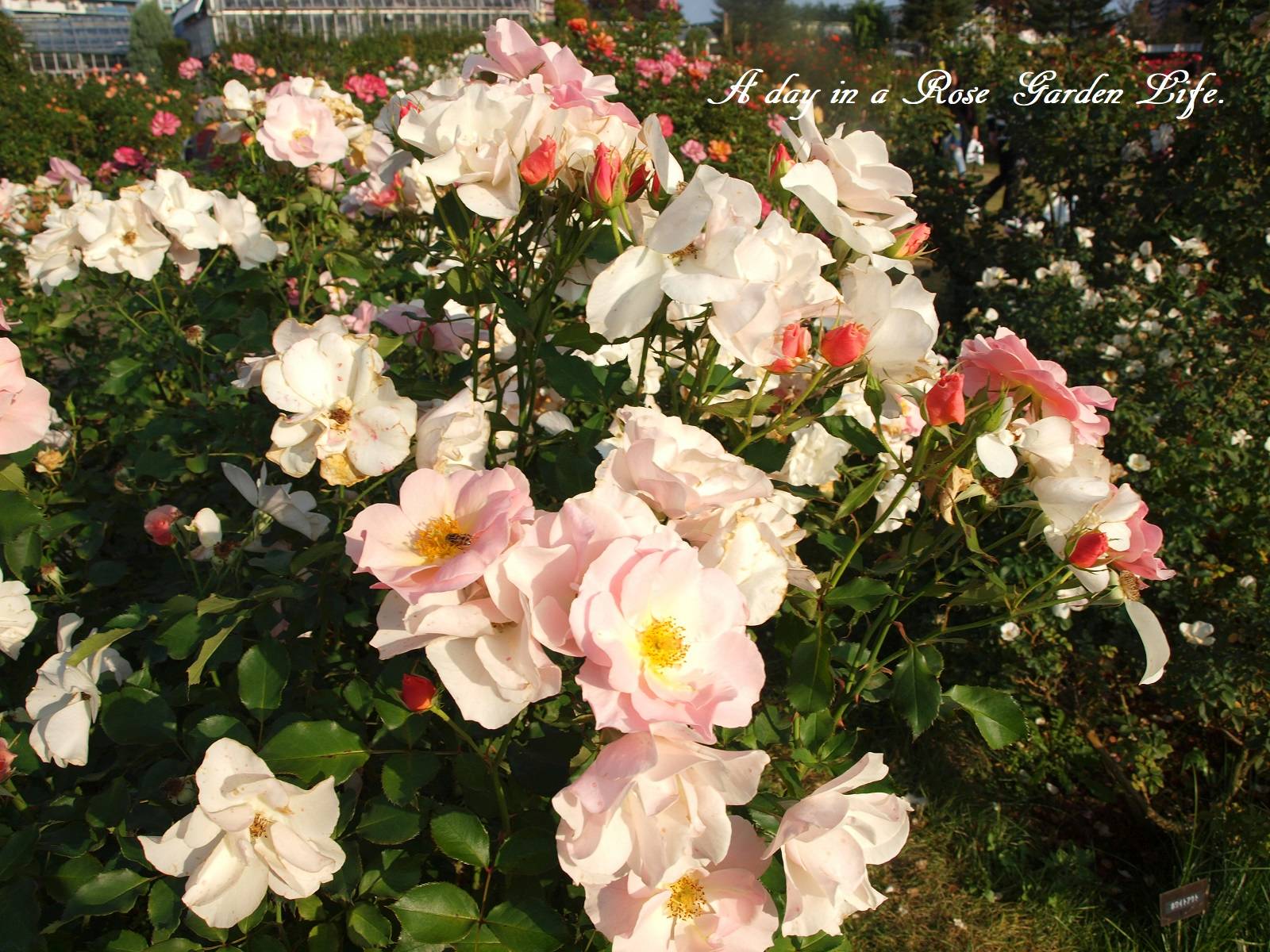 バラ園で楽しむ花は、1輪をアップで撮るのではなく、