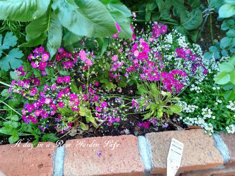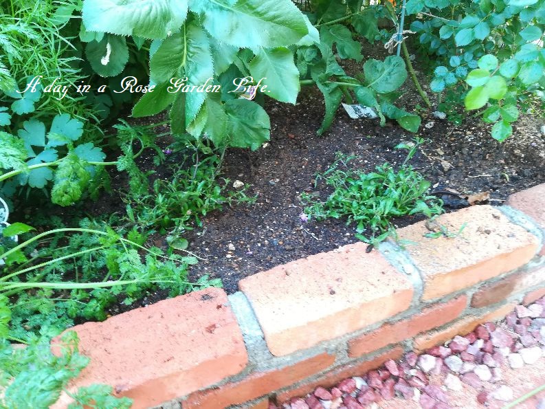この花壇はバラがメインなので、前景は背丈の出ない植物を植えたいのですが、