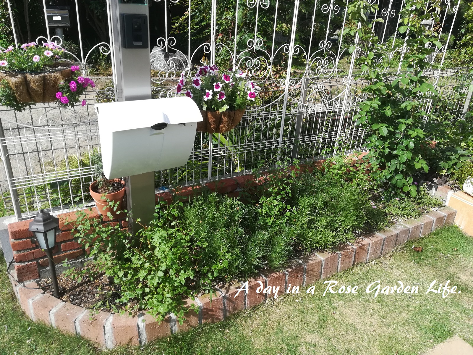 玄関花壇の草花も、かなり密集してきたので夏越しのために