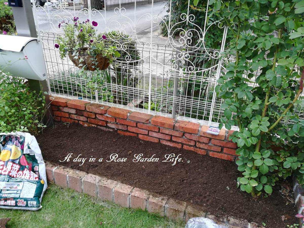 冬花壇にすると同時に、この花壇へもう一本バラを地植えすることにしました。
