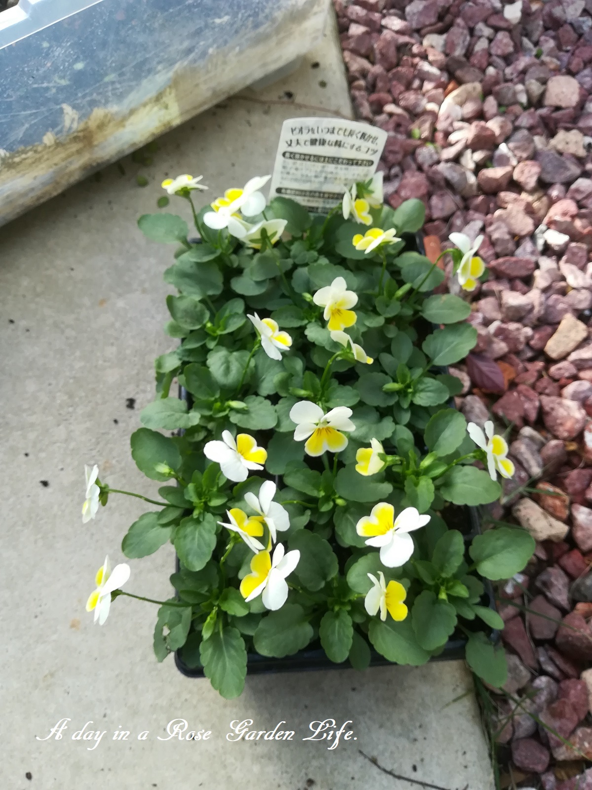 15株入りビオラは、ポリポットへ植え替えて、花壇植えするまで大きく育てます。