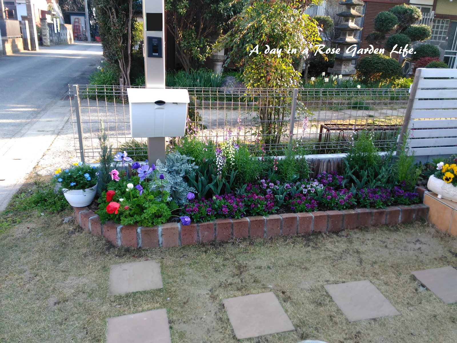 初めの年はまだ土が固い状態でしたが、ビオラやチューリップ、その次の夏はブルーサルビアなど強い植物を植えることでまあまあ育ってくれました。