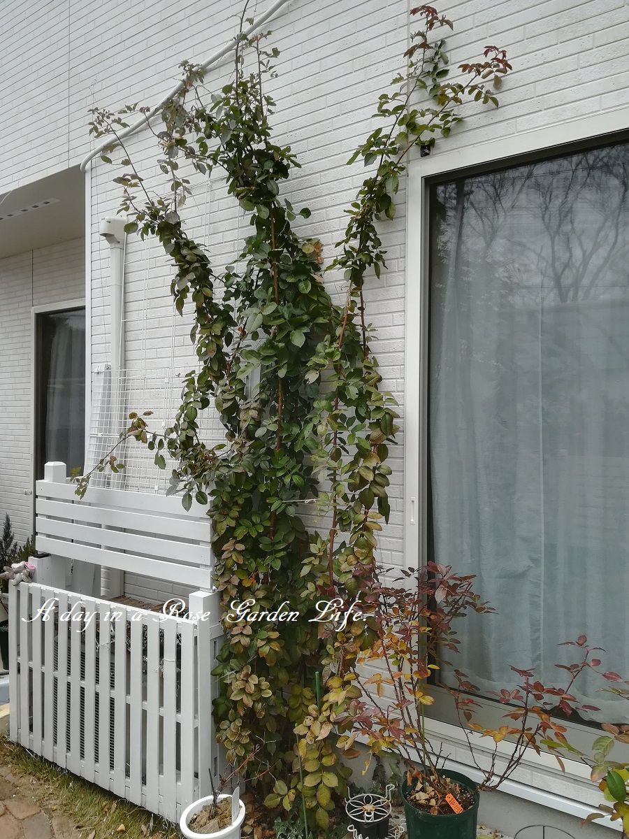 日当たりのよい南側壁面なので、今育てているバラの中で一番大きく育っています。
