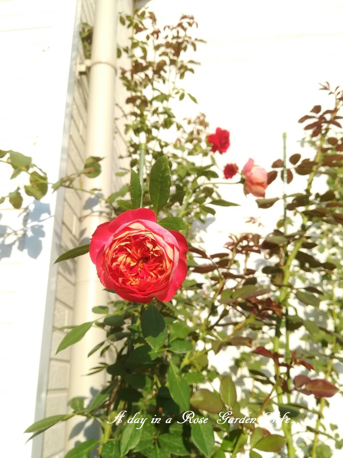 次はリビングから一番よく見えるフェンスへ今年植え付けたアミ・ロマンティカ。