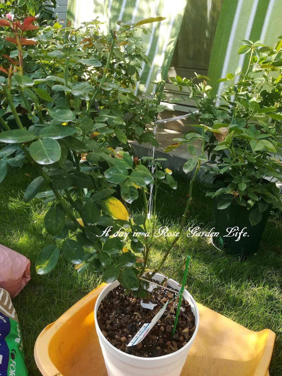 このバラは枝の途中に癌腫ができて成長が止まりかけていたのですが、枝全体を切り取ってみたところ回復して元気になってきました。