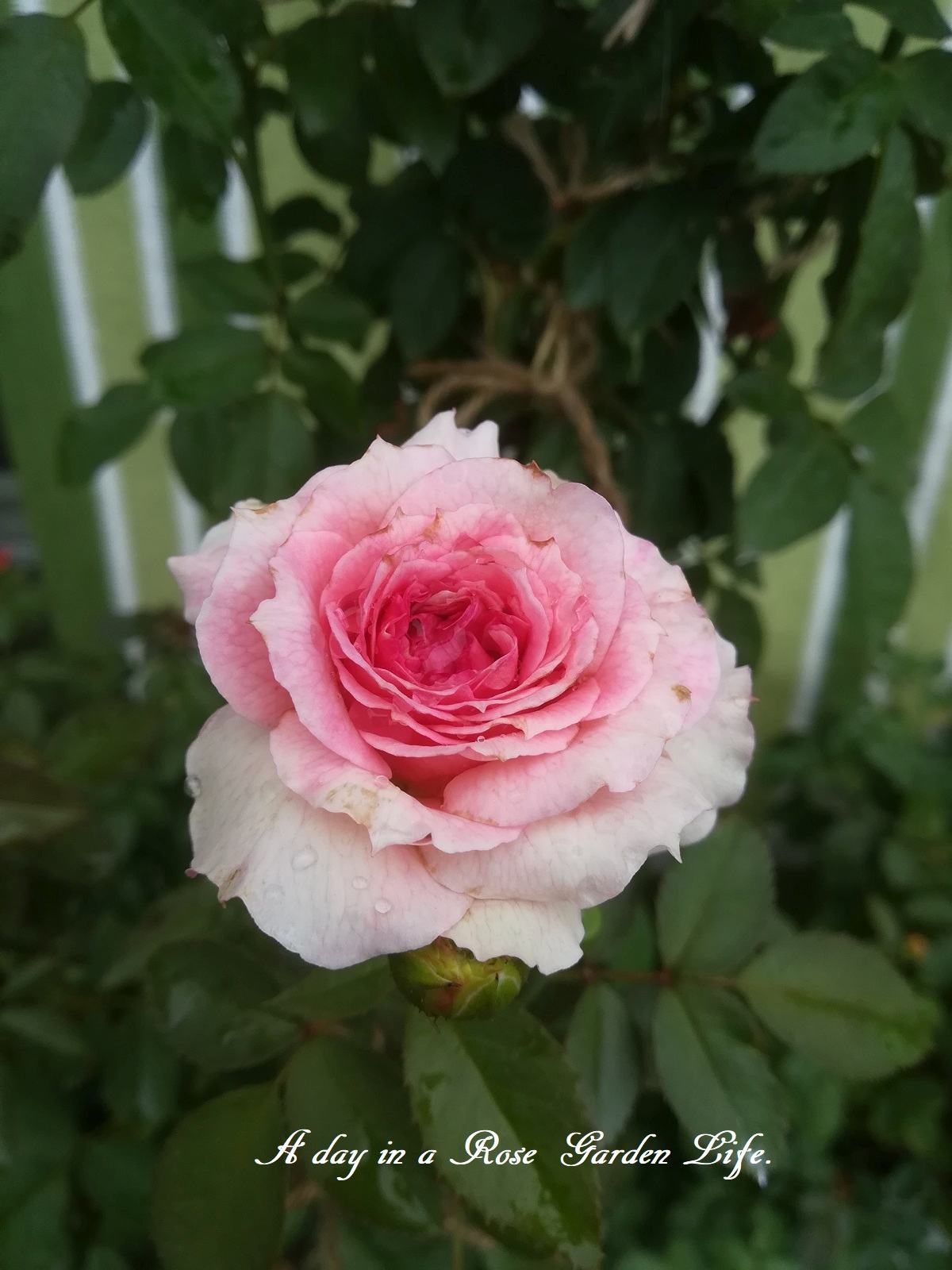 でもこのバラ、カタログでも「栽培条件によりピンク一色で咲く事があります」と断りがあるように、咲く花の安定性が低いように感じます。