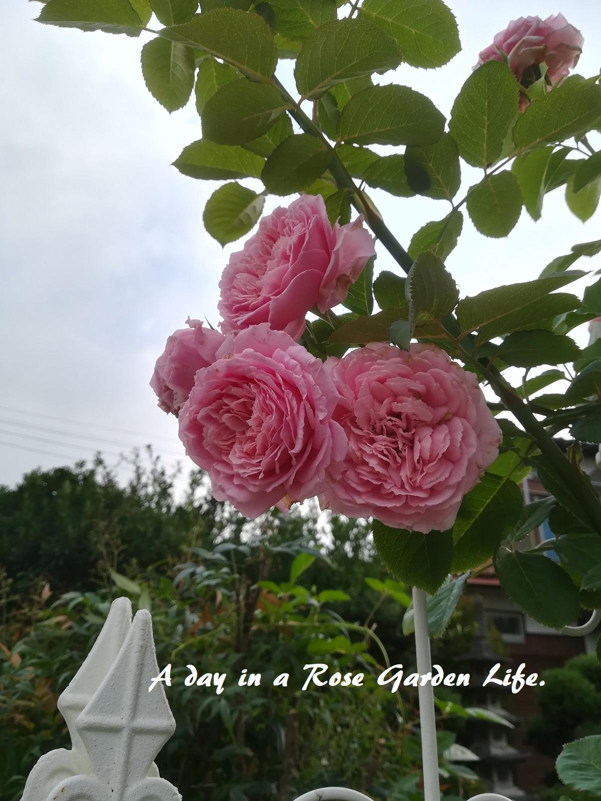 「ポンポネッラ」も咲き始めました。こちらはコルデスのバラなのですが、レオナルドダビンチよりさらに小さな花であるものの、蕾の付く数がすごい。付きすぎてどうしよう!?って思うくらいつくらしいですw