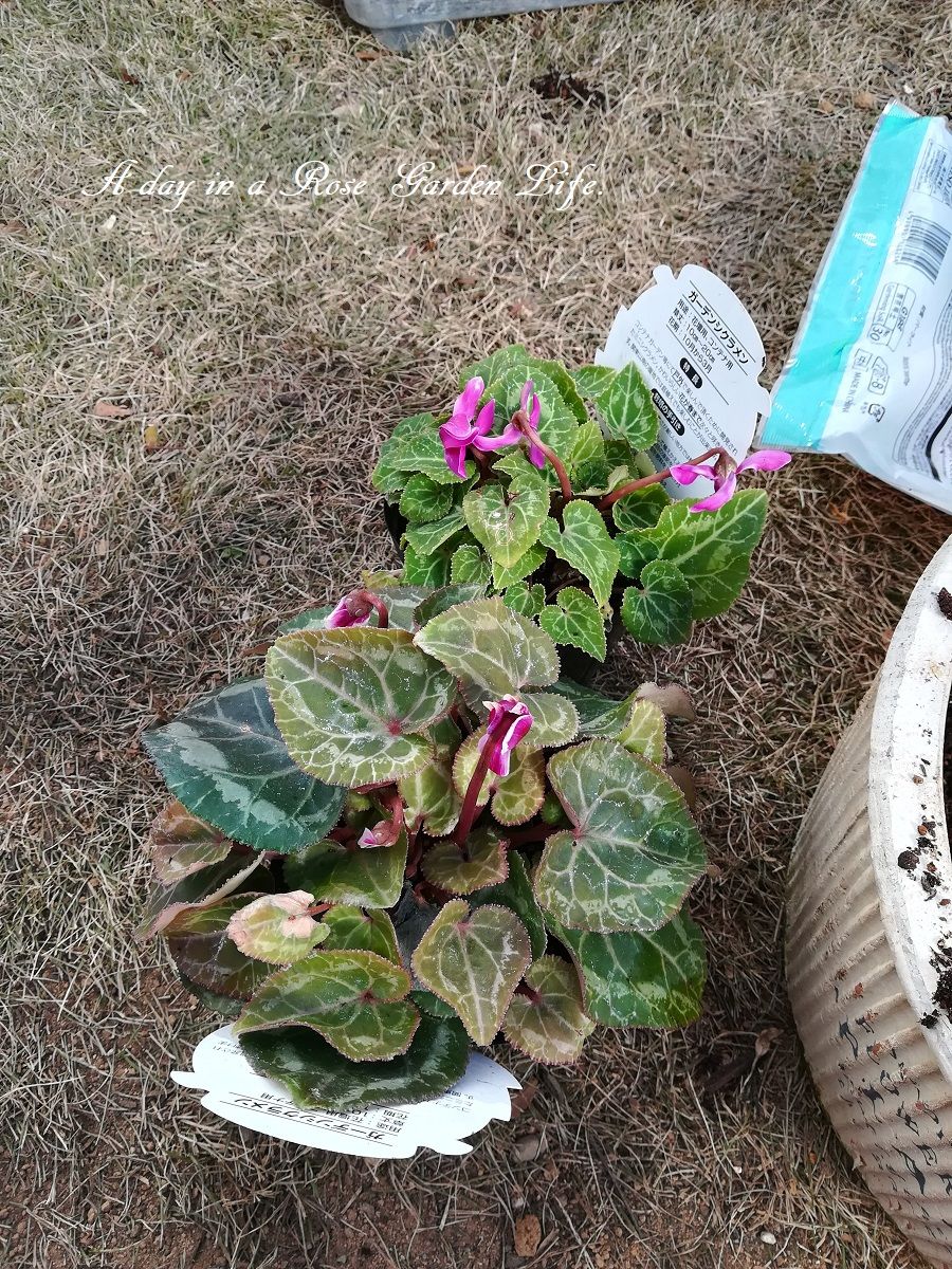 この時期、寒さに強い花となるとビオラ・パンジーばかりになってしまうのですが、ガーデンシクラメンが近くのHCで