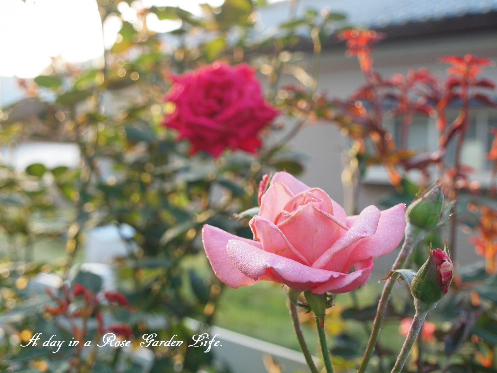 奥の赤バラはクリスチャンディオールです。クリスチャンディオールはうどんこ病が急に出てきました。対策として昨日サルバトーレMEを散布しています。