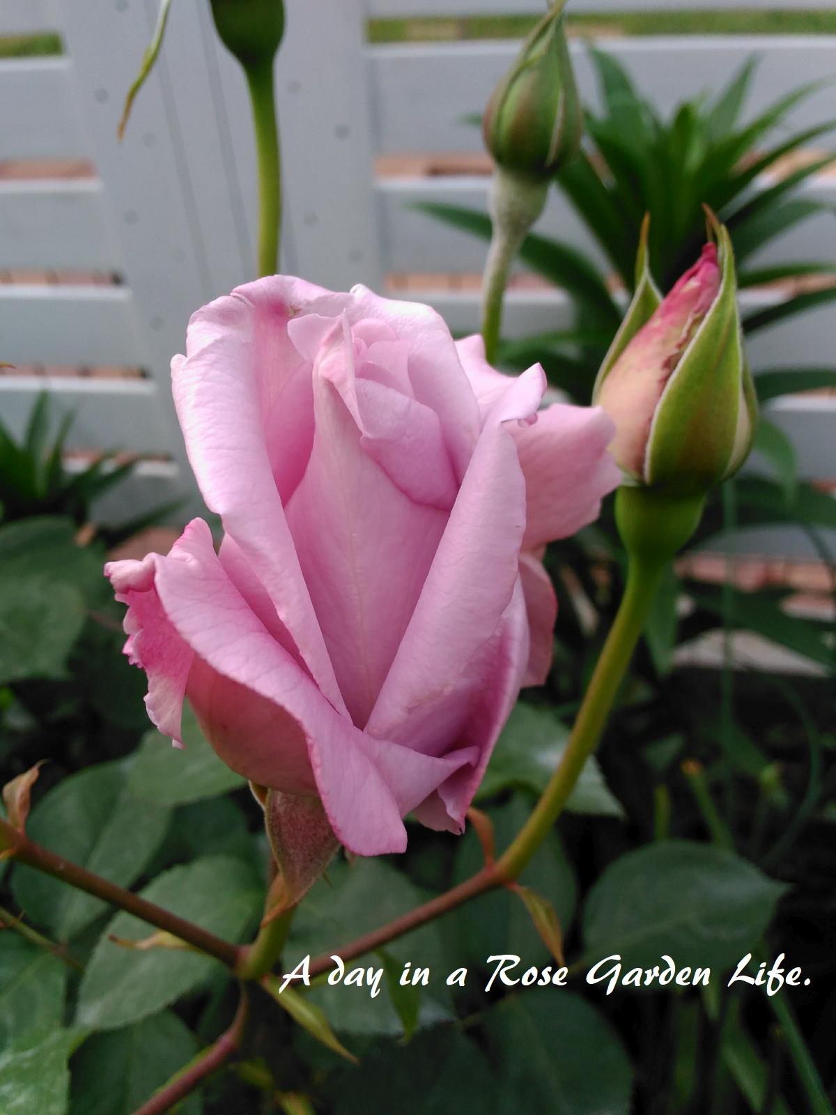 昨年、ピエール・ドゥ・ロンサールとほぼ同時期に、ジョイフル本田で手に入れたのが花が終わって安くなっていた鉢花の「ブルームーン」と、新苗だった「ジャルダン・ドゥ・フランス」でした。それぞれその年は花を咲かせず、鉢で育てて冬に庭植えにしました。