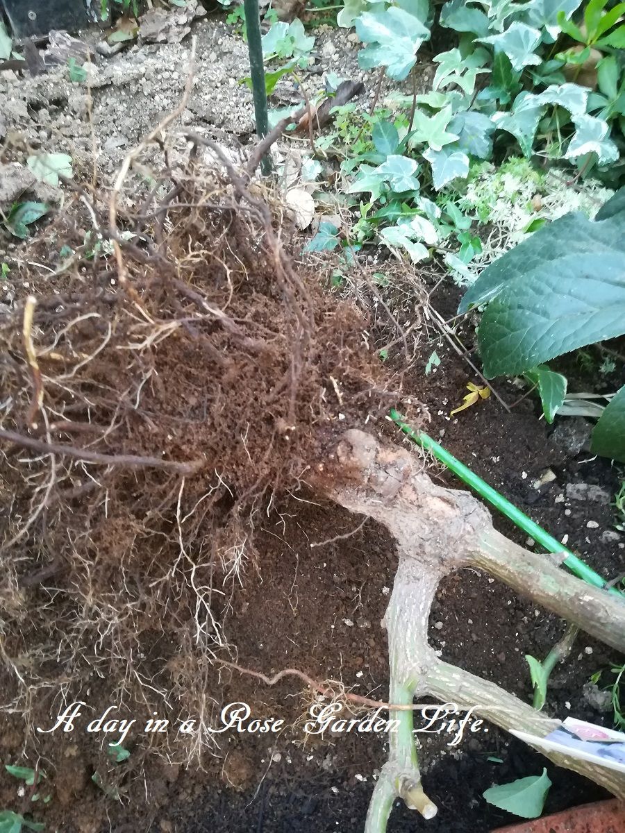 抜いた場所は熱湯消毒して別のバラを植える予定。